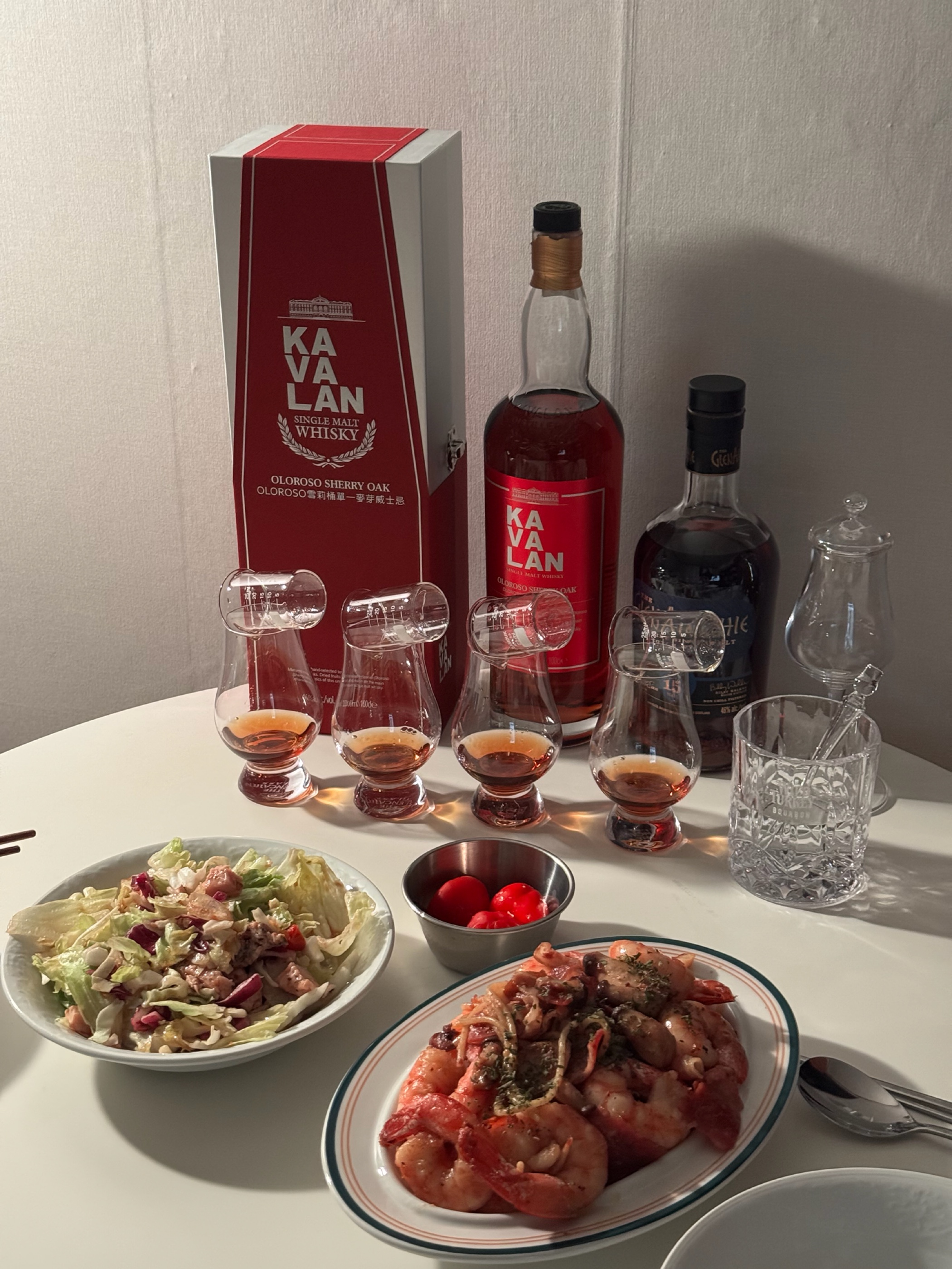 1. nose • 뚜따 직후: 당연히 존재하는 알콜 치는 향과 스파이시한 향이 공존합니다. 신형의 경우 뚜따 직후에도 바로 달고 조금은 가벼운 향이 올라오지만 이번에 경험한 구형은 조금 더 묵직한 향이었습니다. • 에어링 이후 : 알콜 치는 향은 거의 나지 않았고 약간의 스파이시함과 시나몬스러운 향과 달달한 향이 났습니다. 2. palate • 뚜따 직후 : 약간의 알콜 치는 맛, 건과일의 맛, 약간의 단맛, 혀가 알싸한 스파이시함, 향신료스러운 맛 • 에어링 이후 : 건과일의 맛, 단맛, 약간의 다크 초콜릿 스러운 맛, 살짝 알싸한 끝맛, 향신료스러운 맛 3. finish • 스파이시함 아직 위린이라 테이스팅 노트를 적는 게 쉽지 않은데, 그럼에도 글렌알라키 15년 정말 다양한 맛과 향이 느껴졌습니다. 신형은 베트남에서 구형은 일본에서 사와서 먹은 글렌알라키 15년 둘 다 정말 마음에 드는 위스키인 것 같고, 쉐리 캐스크 위스키에 더 빠지게 만든 위스키입니다.