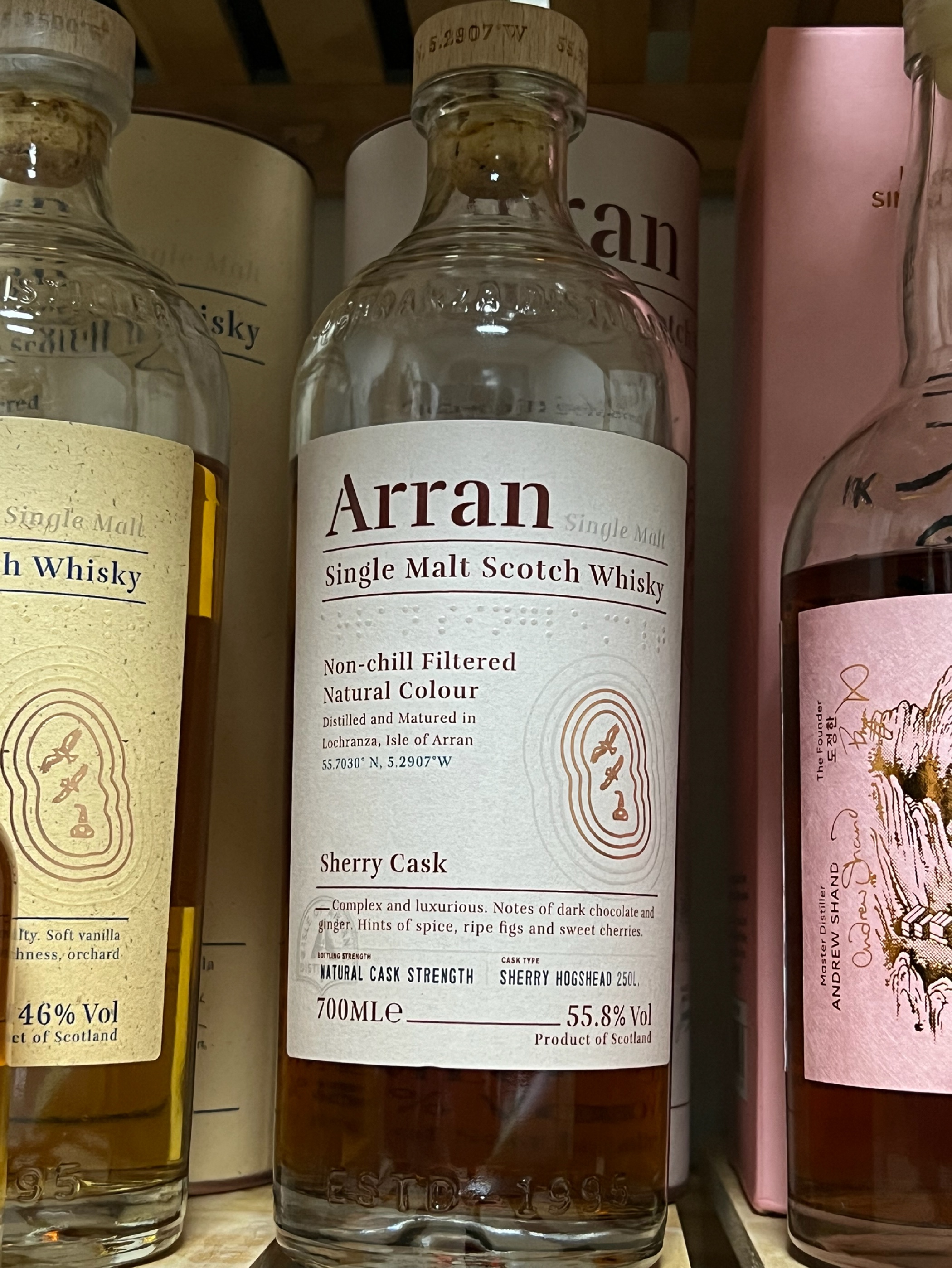 위스키파크 성남점에서 구매한 아란 셰리캐스크입니다. 아란10년의 맛이 너무 좋았던지라 시리즈들 시음 후 셰리를 구매하였습니다. 소개 아란은 스코틀랜드의 아란섬에 위치한 증류소입니다. 담고있는 스토리중에서 검독수리의 일화가 인상적입니다. 매년 찾아오는 한쌍의 검독수리가 로고에 새겨져있습니다. 아란 셰리는 혹스헤드캐스크를 사용, 풀셰리입니다. 숙성년수는 미표기(NAS)이며, CS제품입니다. 도수는 55.8% 입니다. 테이스팅 - 향 : 달콤한 베리류, 꿀, 청포도, 자두, 약간의 우디함 데일리샷에 있는 노트와는 좀 다른 방향으로 느꼈습니다. 청사과향과 과실향을 잘 맡던지라 딸기와같은 달콤한 베리류, 자두, 청포도, 꿀 등의 달콤한 느낌을 받았고 약간의 오크향이 났습니다. 밝고 달콤한 느낌의 위스키를 좋아하는 저로써는 굉장히 기분좋은 냄새로 다가와 좋은 점수를 주었습니다. - 맛 : 달콤한 베리류, 청포도, 꿀, 약간의 캬라멜, 스파이시 아란10년에서 맛본 달콤하고 스파이시함은 그대로 느낄 수 있었고 거기에 달콤한 건포도, 청포도의 노트가 추가된 듯한 맛이었습니다. 아란만의 개성과 셰리의 개성이 잘 살아있는 멋진 바틀입니다. 달콤함에 가려졌지만, 캬라멜의 느낌도 조금 있습니다. 전반적으로 단 느낌이 강하지만 조화롭습니다. - 뒷 맛 : 달콤함과 스파이시함이 쭉 끌고가는 긴 여운 여운또한 안좋은 맛 없이 길게 가져가는게 직관적인 맛이지만, 한잔을 아주 기분좋게 만들어줍니다. 높은 도수에서 오는 강한 스파이시함이 다소 부담스러울 수도 있지만 여운이 지나간자리를 깔끔하게 해줍니다. 마치며 55.8도의 고도수이지만 부즈없이 맛이 좋습니다. 직관적인 맛이 상당히 인상적이지만 개인적으로는 단점을 꼽기어려운 만족스러운 바틀입니다. 아란을 좋아하신다면 만족스러운 바틀이 될 것 입니다. 개인적으로는 톡튀는 셰리의 맛도 있지만 아란의 캐릭터성이 잘 살아있어 프라이빗캐스크보다 만족도가 좋았습니다. * 주관적인 느낌이 들어간 테이스팅노트 입니다.