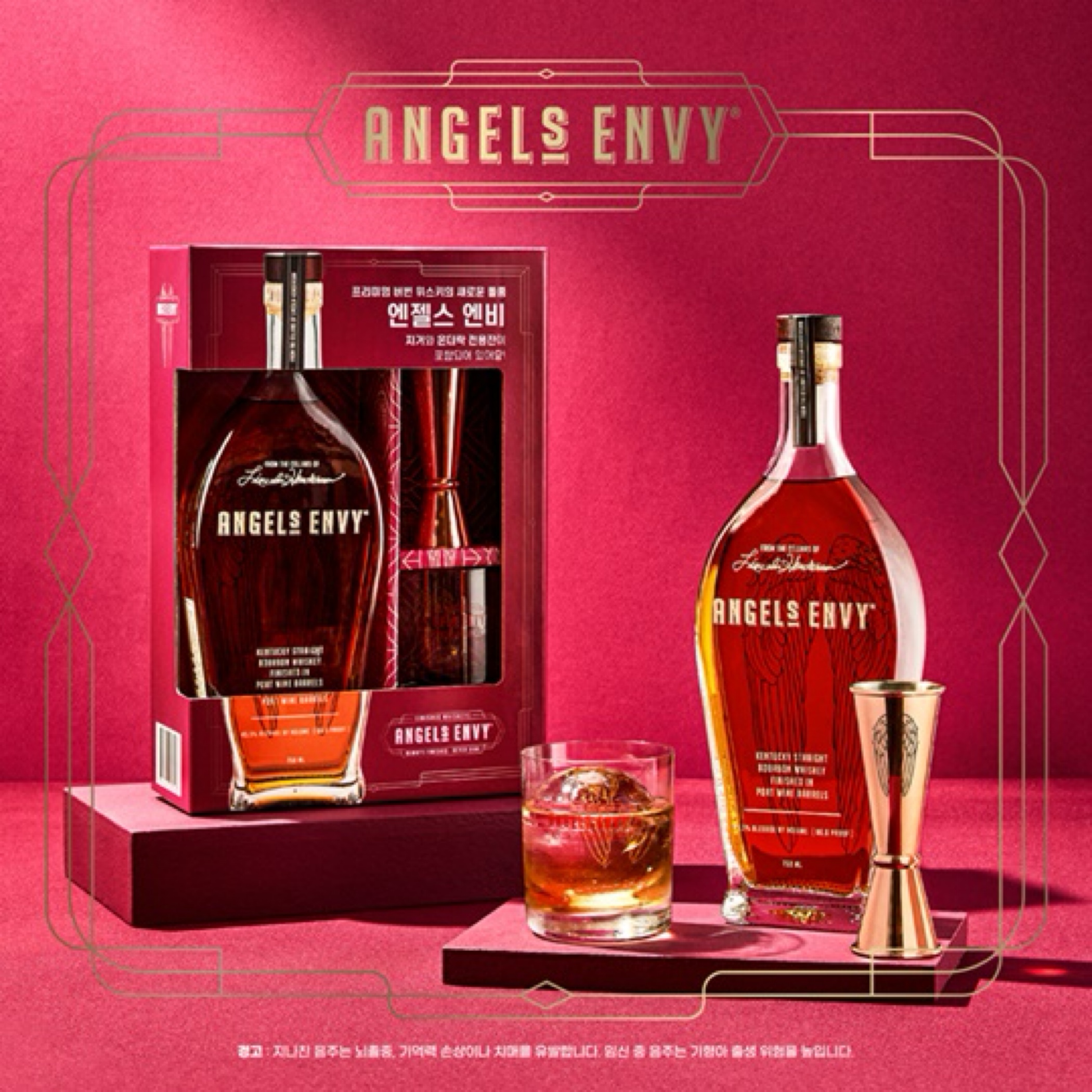가성비를 찾던 중 홈플러스에서 포인트적립할인으로 구매한 엔젤스 엔비 포트캐스크 피니쉬 입니다. 사진의 지거, 잔세트로 구매하였습니다. 설명 엔젤스 엔비의 이름은 천사들의 질투를 산다는 의미를 가졌습니다. 포트캐스크 피니쉬 제품은 새 아메리칸 오크에서 4~6년간 숙성울 마치고 225L크기의 루비포트캐스크에서 마지막에 6개월숙성한 제품입니다. 옥수수 72%, 호밀 18%, 몰트 10%의 매쉬빌을 가졌습니다. 도수는 43.3%입니다. 테이스팅 - 향 : 카라멜, 바닐라, 스파이시, 건포도 버번답게 카라멜과 바닐라가 지배적입니다. 향신료의 스파이시함도 있고 포트캐스크에서 피니쉬하여 포도의 단내음도 잘 맡을 수 있습니다. - 맛 : 카라멜과 약간의 바닐라,스파이시, 우디함, 건포도와 자두 향은 전형적인 버번의 뉘앙스이지만 맛은 거칠지 않고 상냥한 버번의 맛이 납니다. 먼저 카라멜을 잘 느낄 수 있고, 바닐라는 존재감이 강하지않은데 스파이시와 우디한 느낌이 같이 복합적으로 나서 그런 것 같습니다. 그다음엔 건포도와 자두의 맛이 납니다. 생각보다 부드럽고 편한 맛입니다. - 뒷 맛 : 포트캐스크의 달달한 맛 무언가 조금 스위트한 와인의 달달한 맛이 좀 남았습니다. 여운은 길게 남지않지만 적당한 길이로 다음 한잔을 부담스럽지않게 해줍니다. 마치며 일반적인 버번을 생각했다면 조금은 실망할 수 있습니다. 하지만 새로운 맛의 버번을 찾는다면 좋은 바틀이 될 수 있습니다. 프 부즈는 거의 없고 초보자분들도 부담없이 마시기좋습니다. 니트가 부담스러울 때 온더락으로 즐기면 또 다른 맛을 느낄 수 있고 체리맛콜라와 함께하면 좋은 조합이 됩니다. 버번은 구운고기와 조합이 좋다고 하지요? 양고기집에서 콜키지해서 같이 먹었었는데 꽤 좋았습니다. 호불호가 존재할만한 바틀이지만, 개인적으로는 나쁘진않았습니다. * 주관적인 느낌이 들어간 테이스킹 노트입니다.