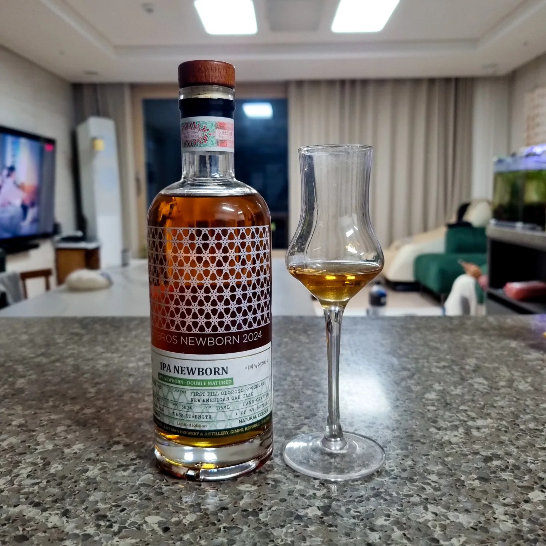#IPANEWBORN #이파뉴본 #크래프트브로스 드디어 올리는 크래프트브로스의 이파뉴본! 1분만에 품절됐었는데 다행이 나는 그 난리통에 건질 수 있었다. 맛있다는 소문도 자자했었고, 또 한정판이라는 말에 참을 수가 없었다! 가격 약 11만원, 용량 375미리, 도수는 58.3도 과연 맛은 어땠을까? 바로 맛을보자! ✅️ 향에서는, 역시 맥주의 향이 난다. 그 막 생소한 이름이라 시켜봤는데, 자몽같은 꽃향기랑 꿀향기 나는 맥주! 딱 그런 향이 난다. 독특하고, 달콤하고 매력적인데, 위스키에서 흔하게 맡았던 향이 아니라 더 재밌다. 플로럴하다 라는 말이 저절로 나온다. ✅️ 맛에서는, 오 이거 그 학교앞에서 먹던 그 노란 맥주사탕같은 맛이 난다?! 향에서 느껴졌던 그 플로럴함이 맛에서도 느껴지고, 고소한 느낌까지 살짝 이어지니 상당히 매력적이다. 피니쉬도 꽤 길게 남는다. 위스키같은 느낌은 아닌데, 또 아니라고는 할 수 없는 너무 재밌는 이파뉴본이었다. 또 구할수있으면 사고싶은데 아마 이제 보틀 구하기는 힘들겠지 싶다. 그러니 남은거 좋은사람들이랑 나누고 아껴먹어야지!ㅎㅎ 오늘의 시음 후기 끝!