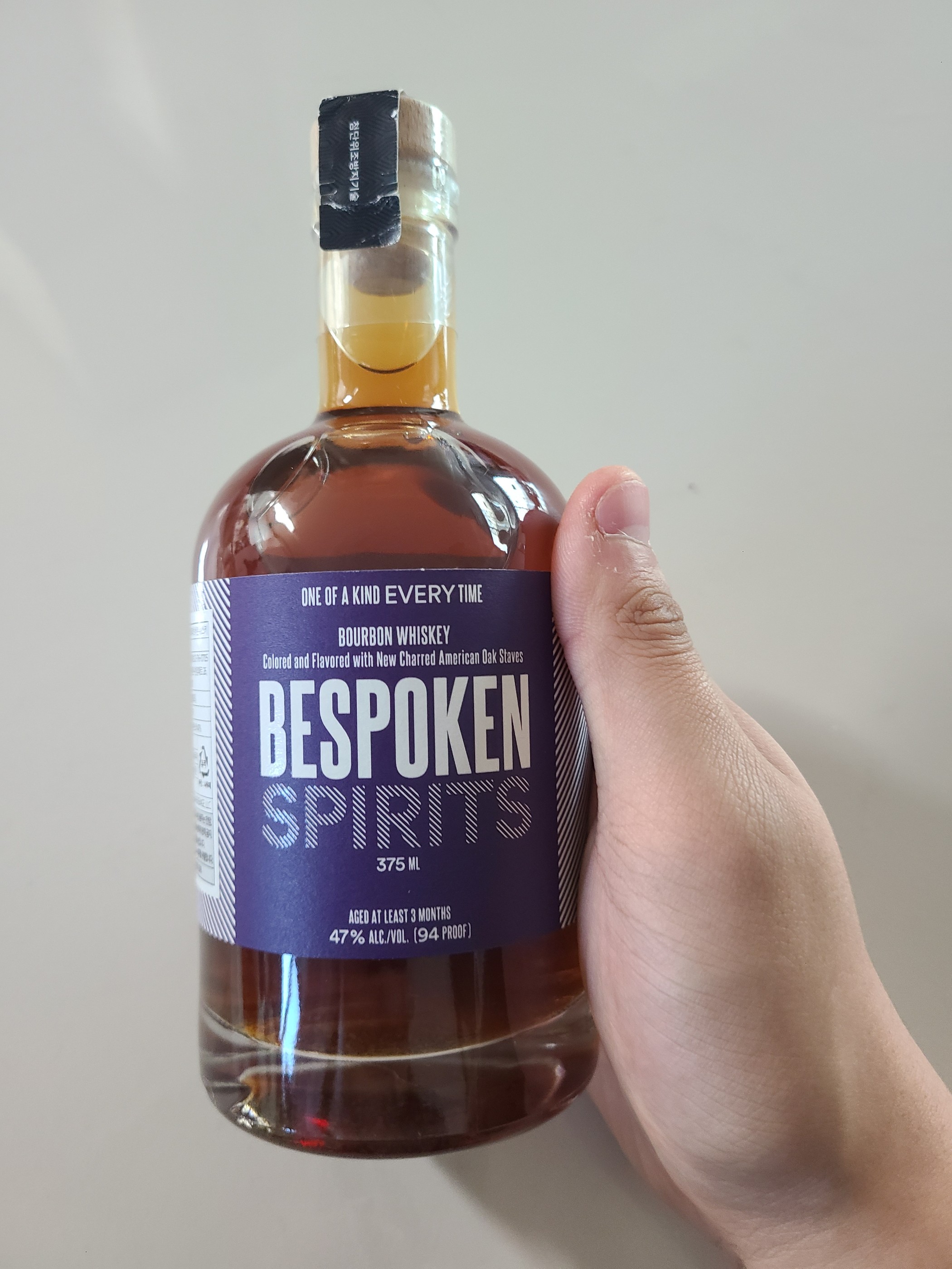 종류 : 버번 위스키 용량 : 375ml 도수 : 47% 고숙성을 과학으로 따라 잡았다는 위스키. 비스포큰, 궁금했는데 이번에 주워왔다. 색 자체는 꽤 진하다. 레그도 잔에서 끈적인다. 향은 바닐라, 코코넛, 카라멜, 우디, 옥수수, 바나나. 뚜따했는데도 알콜이 막 치지 않고 과일 과일 하다. 향이 다양하고 신기하다. 맛은 버번은 아니다. 버번처럼 치는 느낌은 거의 없다. 상당히 부드럽지만 향 만큼 맛이 다채롭지는 않다. 카라멜과 바닐라 두 개의 맛이 거의 지배적이고 건과류와 후추 같은 스파이시가 있다. 피니쉬는 다시 의외로 버번 같다. 꽤 덟은 느낌. 꽤 독특한 경험이다. 향은 호, 맛은 미묘. 그래도 과학의 산물 5일 숙성, 이정도면 매우 만족이다.