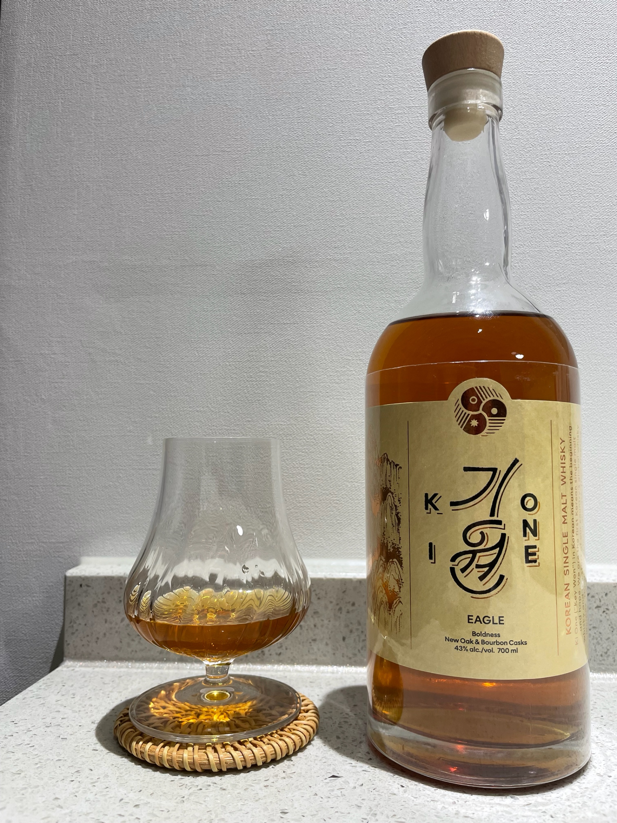 Nose 풋풋한 오크향이 느껴지며 버번위스키에서 느껴지는 바닐라, 아세톤, 체리 보단 조금 더 시트 러스한 과일향, 정확히는 깔바도스에서 느꼈던 사과향이 느껴지며 플로럴하고 버번은 자기 주장이 약하나 푸릇푸릇한 민티함이 돋보인다. Plate 꿀의 달달함, 상큼한 과실과 레몬, 라임 그 중간 어딘가의 상큼함이 있다. 하지만 오래가지 않 아 스파이시한 매운 맛이 탁 치고 들어온다. 적절한 비유인지는 모르겠지만 멕시코의 몰레라 는 소스가 있다. 매운 초콜렛만 소스인데 첫 맛이 달달한 초코 맛이라 방심하고 굴렸는데 뒤 늦게 매운 맛이 돌아 애먹은 기억이 있다. 이와 비슷하게 꿀과 상큼함 그리고 낮은 도수로 입 에 오래 굴리면 큰코 다칠 수 있다. Finish 노즈와 팔레트에서의 향과 맛이 온전히 보존되면서 나오나 끝에 젖은 나무 맛과 견과류, 약간 의 토피넛 과자 향이난다.