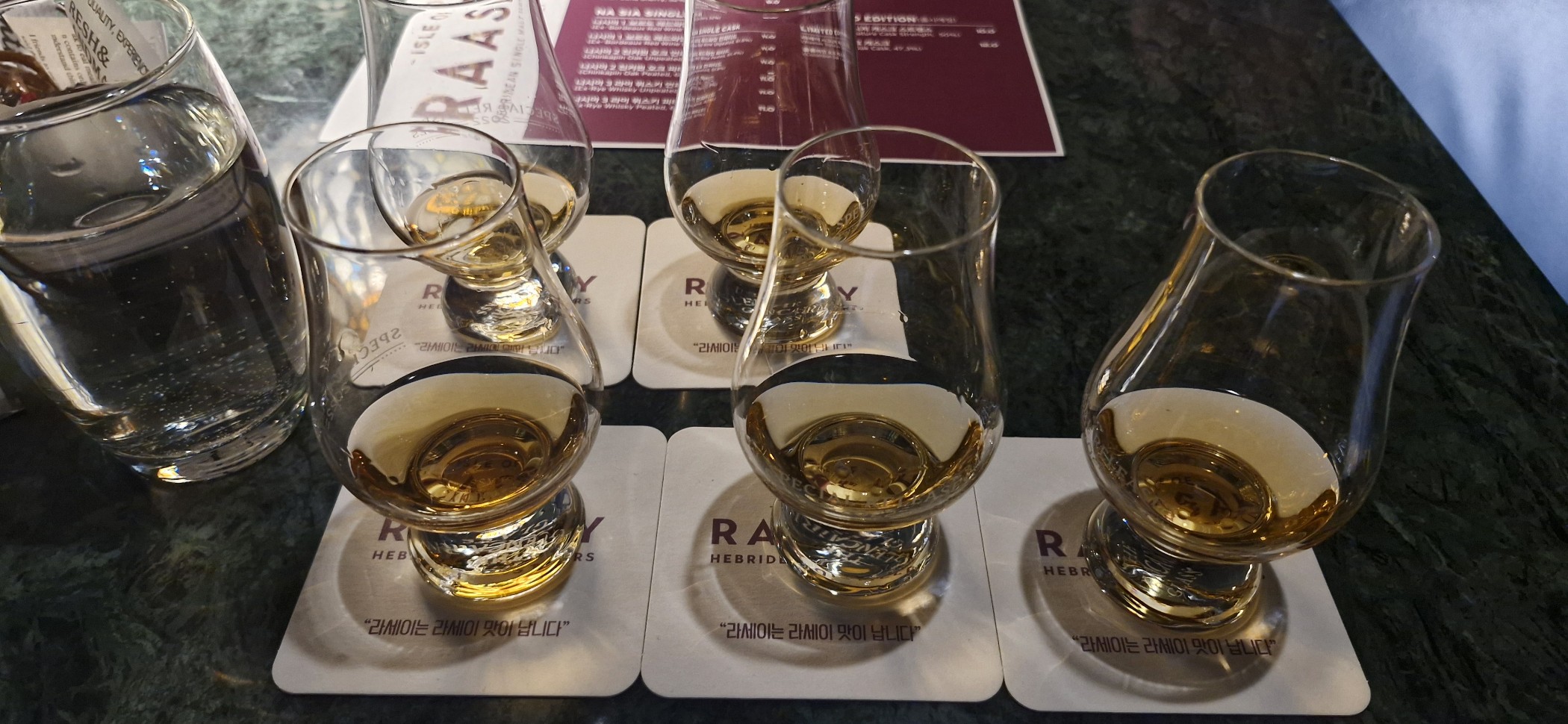 던카나 셰리 52% 던카나는 라세이 뒷산 봉오리 이름 라세이 증류소 한정판이었음 맨 왼쪽 아래가 던카나 셰리 n 약간의 피트, 쿰쿰함, 블랙베리, 오렌지, 풀향, 민트 화함, 약한 알콜향 p 약한 캐러멜 및 바닐라 , 강한 레몬제스트와 약한 오렌지, 블루베리 과육맛 f 탄닌, 오크 피트와 셰리캐스크의 쿰쿰함이 섞여 묘한 느낌