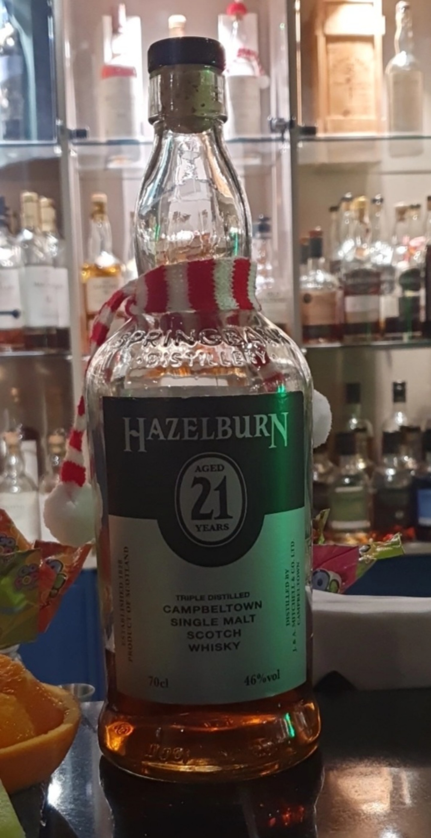 헤이즐번 21년 N: 바닐라, 꽃(여자 향수같은), 플라스틱, 파인애플, 약피트, 민트, 청사과, 흑설탕, 망고, 포도, 과일치즈, 휘발유, 흙내 P: 망고, 잘익은 사과, 스파이스, 플라스틱, 카카오 닙스 F: 다크 초콜릿, 꽃, 살구, 흙설탕, 떫은, 복숭아, 우디 좋은 타격감, 입안에 향수를 감은 듯한 위스키였습니다. 스프링뱅크 증류소에서 생산되는 만큼 서로 비슷한 뉘앙스를 띄는데요, 스프링뱅크 21년을 마셔 본 경험이 전무해 정확한 비교는 어렵지만. 좀 더 플로럴하고 바닐라틱한 느낌이였습니다. 나중에 비교시음 한 번 해보고 싶네요!