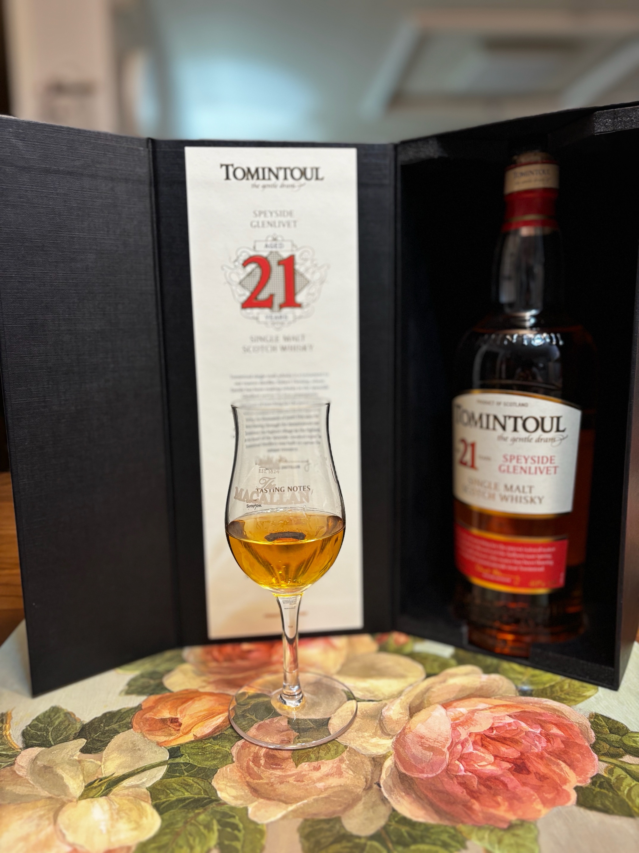 TOMINTOUL 21y 후기 - 한줄요약 : 도수가 5도.. 아니 3도만 높았어도…! Gentle Dram (부드러운 한모금) 을 컨셉으로 내걸고, 16년이나 시가몰트나 그런 뉘앙스를 지키려고 노오력을 하는게 확실히 느껴지는 증류소인 토민타울. 라벨 디자인은 뭔가 올드한데, 개인적으로는 그게 마음에 듦. 21년 숙성 라인업이면, 그래… 케이스도 이정도면 괜찮게 빠졌고… 향은 꽃 (국화….?), 캬라멜 그리고 바닐라랑 약간의 꼬숩한 과자 같은 뉘앙스가 느껴지며 맛은 gentle dram이라는 컨셉에 맞게 직관적이고 달달하며 부드럽고 약간 크리미함도 느껴진다. 배랑 사과가 살짝 스쳐지나가며 이후에는 꿀과 바닐라의 달달함이 스윽 올라오며, 첫 뚜따시에는 아주 약간의 나무빠는 맛 같은 느낌도 살짝 올라왔는데, 얘는 에어링하면 사라지고 그 자리에 옅은 몰티한 고소함이 남는다. 전체적으로 버번캐에서 잘 뽑아낸 ‘화사한 달달함’이 주가 되는 친구라는 느낌이었으며, 음… 역시 도수에 대한 아쉬움은 계속 머릿속을 멤돈다 ㅠㅠ… 6도… 아니…3도만 높여서 43도정도만 맞춰서 내줬어도 좋았을걸… 하는 아쉬움이 계속 남음. 허나 16년을 마시고 ‘너무 흔하게 플랫하네’ 했던 거와는 달리 21년은 ‘충분히 맛있게 즐길만한 한 잔’ 정도의 퍼포먼스를 보여주는것 같기는 함. 약간 야마자키 DR에 사과랑 배 쓰까놓은 과즙을 한방울 떨구고 그 위에 꽃잎을 띄우고… 워터드랍 한방울 넣으면 이런 맛이 나겠지…? 하는 느낌. 사실 뭐 할인된 가격에 구매하는게 아니면… 50만원대에 살 만한 녀석은 아니긴 하다. 그돈씨 맞지… 집에 손님이 왔을때, 좋은 손님에게 애피타이저용 스타터 위스키로 대접하기엔 나쁘지 않은 친구인것 같다.
