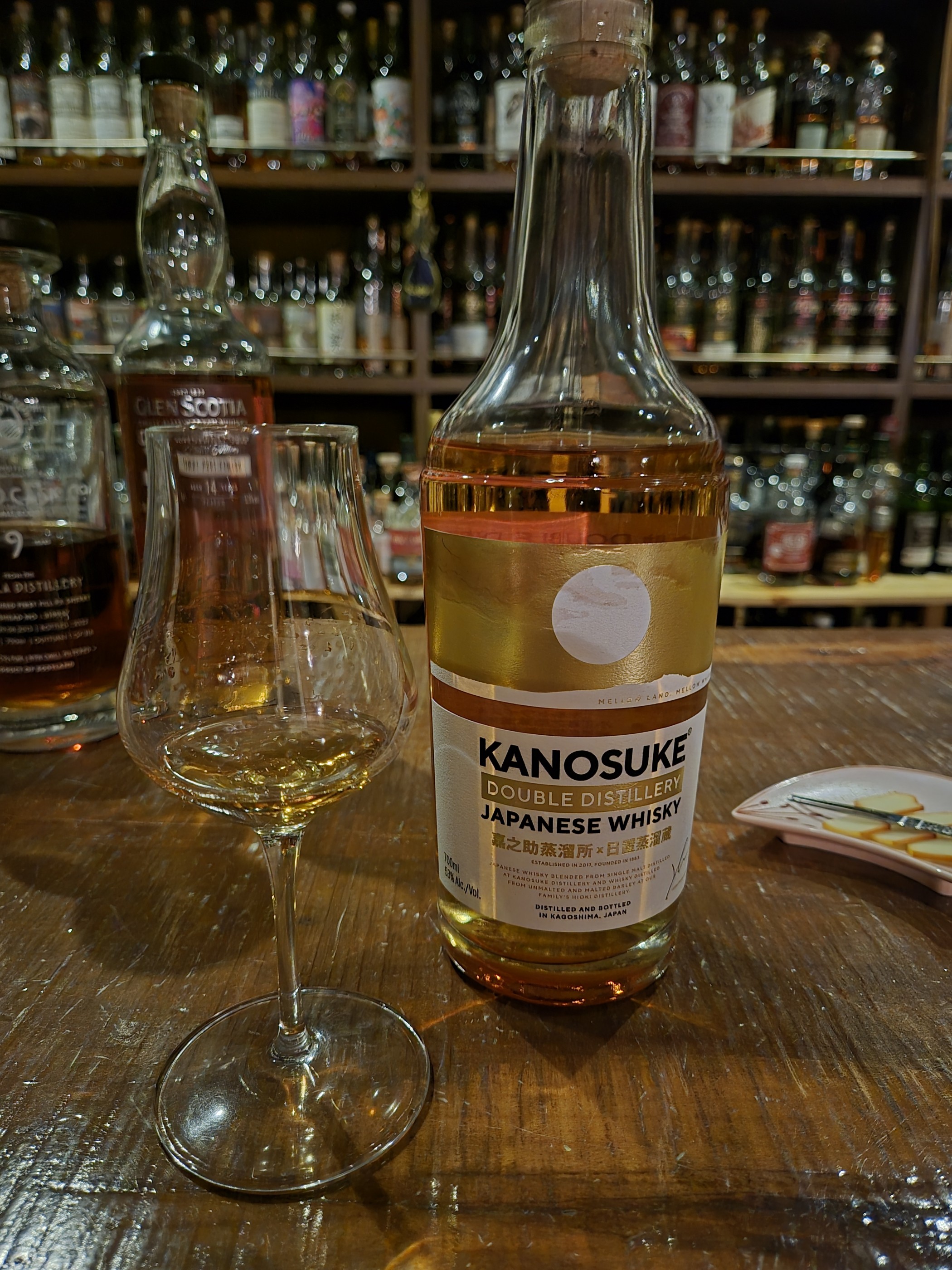 후쿠오카 바에서 마스터와 한국 신생 위스키 얘기가 나왔는데 일본 신생 위스키도 마셔보라고 해서 마시게됐습니다. 근데 너무 저숙성이어서그런지 별로였네요 N 저숙성한느낌의 알콜취 알콜꽤나쏨 버번/버진캐스크 사용했나? 바닐라 시트러스 생나무 전형적이긴하다 P 저숙성 알콜느낌이 계속남; 버번캐이긴 한듯한 경쾌한 느낌 복숭아 바닐라 박류 F 빨리떨어짐 박류 바닐라