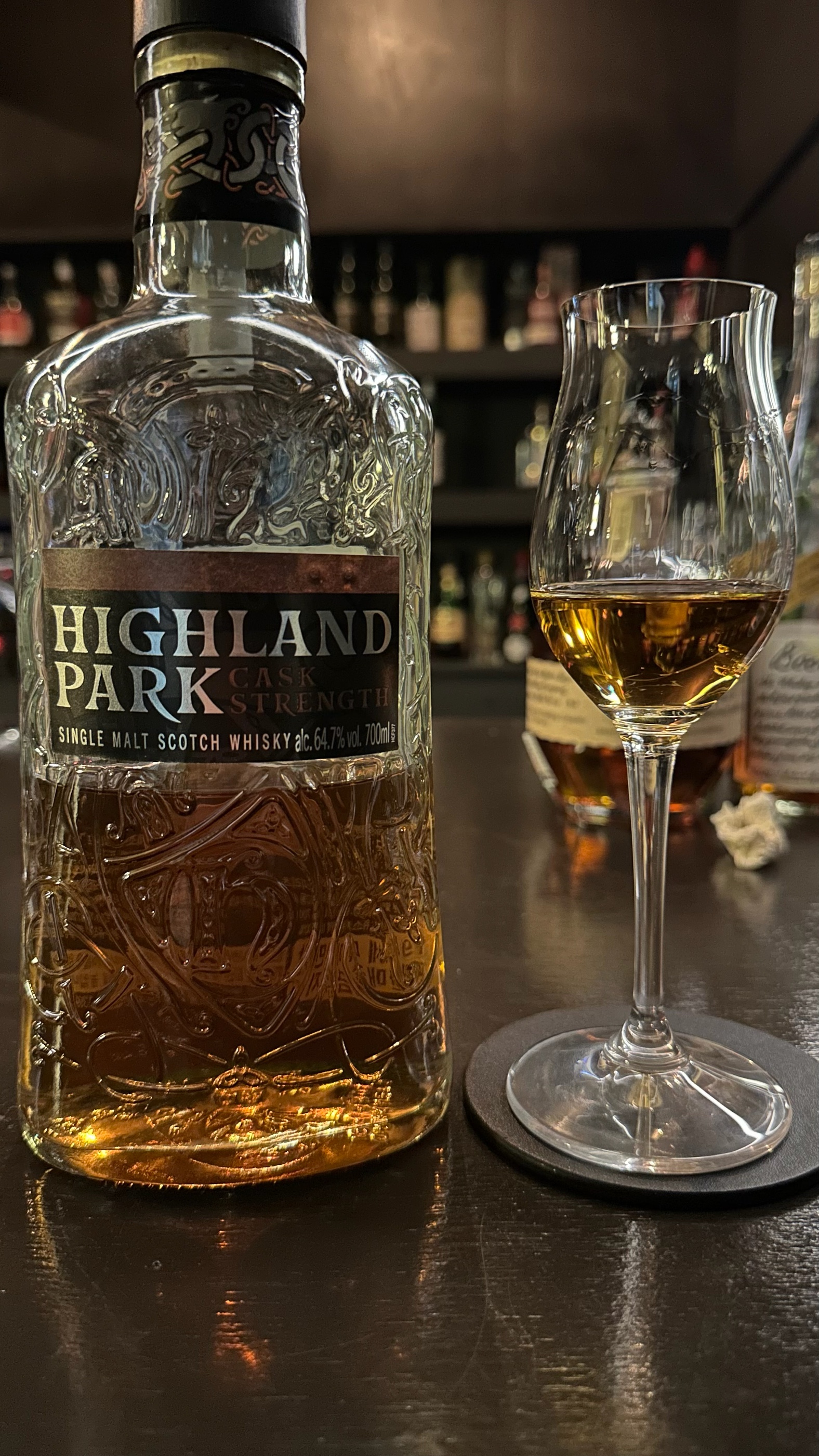제가 좋아하는 증류소 탑5 안에 드는 하이랜드 파크 증류소의 cs 버전입니다. 배치 1이 상당한 호평을 받은 후 5번까지 출시되었는데 1~5번 모두 비슷한 듯 하면서도 상당한 차이를 가지고 있어 비교시음 하는 재미도 있는 것 같습니다. 하이랜드 파크 하면 저는 다재다능하다는 생각이 듭니다. 인터넷에 위스키 입문 표? 같은 것에서도 처음 먹고 판단할 게 하이랜드 파크였던 것 같은데 그만큼 위스키에서 느낄 수 있는 다양함을 고루 가지고 있다고 생각합니다. 이 cs 버전은 그걸 더 증폭시켜놓은 느낌이라 생각하면 좋을 것 같습니다. 향 처음 느껴지는 것은 생각보다 건포도 같은 셰리 뉘앙스가 잘 느껴집니다. 복숭아와 자두의 과일 느낌도 나며 약한 피트감과 함께 달달한 꽃과 꿀의 느낌도 납니다. 높은 도수답게 약간의 알코올과 향신료 스파이시도 있습니다. 맛 향보다는 셰리의 뉘앙스가 덜 느껴지는데 다크초콜릿과 바닐라, 짠 맛이 가장 먼저 와닿습니다. 입을 가득 채우는 풀 바디감에 화사한 꽃향기와 복숭아 같은 맛도 느껴집니다. 피니시 말린 과일의 단 맛 뒤로 견과류의 고소함이 올라오는 게 상당히 좋습니다. 피트보단 스모키함이 주로 느껴지며 바닐라와 스파이시도 함께 남는데 도수가 도수인지라 강하게 남습니다. 총평 과하다고 느낄지의 여부는 한 끗 차이 말 그대로 좋은 맛을 더 풍부하게 느낄 수 있지만 65도에 육박하는 도수 때문에 스파이시함도 상당히 강합니다. 저는 좋아하는 편이지만 컨디션에 따라 과하다고 느낄 수도 있을 정도로 편하게 마시기에는 부담이 되는 바틀입니다. 하지만 고도수의 하이랜드 파크는 어떨까 싶은 분들께는 꼭 추천드리는 위스키입니다.