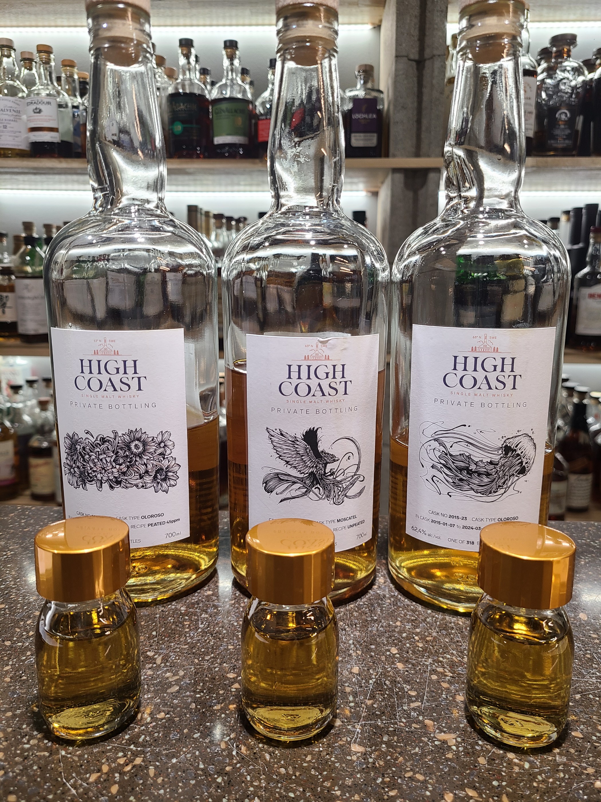 종류 : 싱글몰트 위스키 용량 : 700ml 도수 : 62.4% 하이코스트 로엔히 프라이빗 캐스크 2015 올로로소 셰리 9년 CASK NO : 2015-23 IN CASK : 2015-01-07 to 2024-03-28 알콜이 꽤 찌른다. 일단 향들이 튀는 향이 없다. 나쁜 뜻이 아니라 밸런스 있게 서로 서로를 잡고 있다. 토피, 서양 배, 과일의 시트러스, 빵, 꿀, 건포도, 푸룬, 건과류, 유산취, 셰리의 약간의 꿉꿉함. 향은 꽤 호불호가 갈릴 것 같다. 난 호. 맛은 꿀, 시트러스, 건과일, 탄닌감, 셰리. 향에 비해 레이어드 없이 단 맛으로 치고 온다. 피니쉬도 꿀, 건과일로 마무리된다. 도수에 비해 바디감이나 질감은 아쉽다고 느껴진다. 솔직하게 그리 취향은 위스키는 아니다. 하지만 이 모든게 위스키의 밸런스로 이겨낼 수 있다. 셰리 위스키를 그리 좋아하지 않지만 튀지도 잘 만든 셰리 위스키는 이렇구나 라고 느꼈다. 이번에도 재미있는 바틀을 찾은 것 같다.