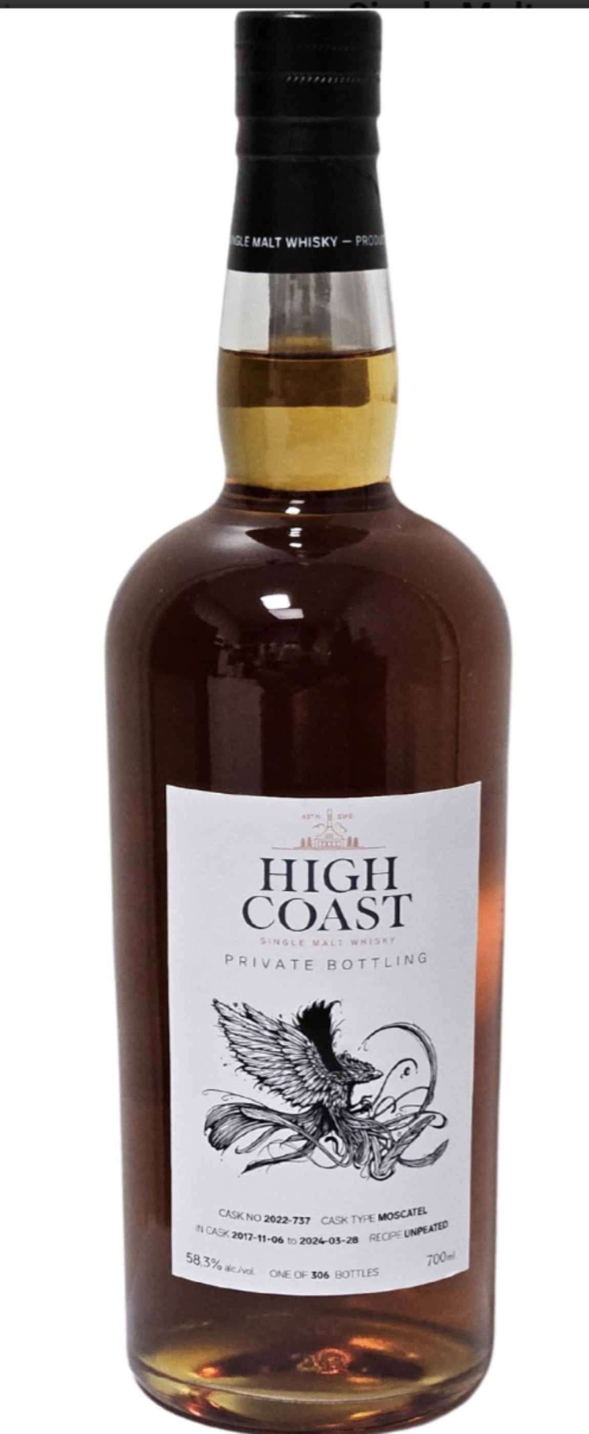 종류 : 싱글몰트 위스키 용량 : 700ml 도수 : 58.3% 하이코스트 로엔히 프라이빗 캐스크 2017 모스카텔 CASK NO : 2022-737 IN CASK : 2017-11-06 to 2024-03-28 모스카텔이라는 이름을 가지고 있듯이 약간 와인의 느낌이난다. (물론, 심한건 아니고 이름에서 오는 선입견이라고도 느낌) 꽃, 스윗 베르무트, 청포도, 꿀, 시럽, 바닐라, 허브 향. 포도, 꿀, 시럽들이 만들어내는 직관적인 단 향이 있다. 단 향 끝에는 약간의 허브의 상쾌함, 시트러스로 끝이난다. 전체적으로 단순하면서 강렬하게 향들이 치고 나온다. 맛 역시 달달하다. 향에서 느꼈던 베르무트에 추가적으로 다양한 과일들. 생각보다 단 맛을 끌고오지는 않는다. 약간의 열대 과일, 파인애플, 건포도, 복숭아, 중간에 올라오는 스파이시. 피니쉬도 앞에서 느겼던 과일들과 시럽, 나아가 잼이 된다. 확실히 위스키에서 쉽게 느낄 수 없는 단 맛에 과일의 풍미가 풍성하다. 밸런스가 좋다고는 못 하겠다. 하지만 바틀 킬을 했던 위스키고 새로운 맛이나 경험을 원하시는 분에게 추천합니다. 하이코스트 증류소! 꽤 좋아한고 재미있는 바틀을 내주는 증류소 입니다. 요게 배치 3? 이렇게 표기는 되는데 왜 그런지는 잘 모르겠네요. 라벨에는 ONE OF (n) BATTLES만 있고 다른 국내에 출시 된 하이코스트 Private Bottling 말고도 국외에서 몇번 마셔봤는데, 동일 년도 바틀이 꽤 많았던 걸로 기억합니다. 혹시 하이코스트 Private Bottling에 배치가 무슨 기준인지 아시는 분 있으면 알려주시면 감사하겠습니다.