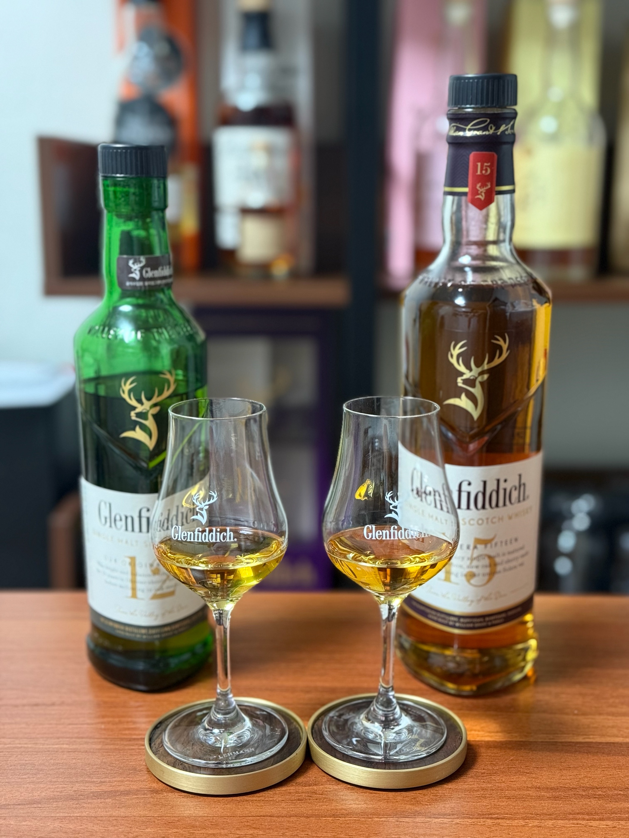 이마트에서 레만글라스 세트로 구입한 글렌피딕 15년 입니다. 소개 글렌피딕증류소15년 싱글몰트제품 입니다. 버번캐스크와 버진오크, 셰리캐스크 원액을 다른 큰 오크통(솔레라 벗)에 옮긴뒤 추가숙성을 진행하여 만들어집니다. * 버진오크는 새로운 오크통을 말합니다. 테이스팅 - 향 : 사과주스, 배, 진한 꿀, 몰티함, 아몬드, 건초, 캬라멜, 셰리의 꿉꿉함, 초콜릿 굉장히 화사하고 밝은 향을 가졌습니다. 청사과보다는 약간 사과주스같은 느낌이었고 서양배와 국산배 그 어딘가의 향이 있습니다. 전체적으로 진득한 꿀의 느낌이 강했고 약간 곡식이나 건초같은 향도 있습니다. 아몬드나 다른 견과류의 너티함, 카라멜, 약간의 셰리 뉘앙스가 잘 있고 어딘가 조금 초콜릿느낌도 있습니다. - 맛 : 캬라멜, 바닐라, 건포도, 청포도, 시럽, 꿀, 민트의 화사함 어딘가 청포도 스러우면서 건포도의 달콤함이 있고, 적당히 진한 바닐라와 시럽의 달콤함, 꿀의 달달함, 카라멜의 맛도 잘 가지고 있습니다. 전체적으로 달달하고 약간 후리보노같은? 민트같은 화사함이 있습니다. - 뒷 맛 : 오키함, 향신료의 스파이시, 꿀의 달콤함 뒤로 갈수록 오키함이 쭉 올라오며 어딘가 향신료의 스파이시함이 옵니다. 꿀의 달콤함이 긴 여운 안에서도 이어집니다. 12년과는 다른 긴 여운이 좋은 만족도를 이끌어 냅니다. 마치며 정말로 멋진 15년 싱글몰트제품입니다. 가격대비 너무나도 훌룡한데요. 향에서는 찾는재미가 상당히 좋았고 맛에서는 긴 여운이 첫맛에서 이끌어내지 못했던 만족도를 잘 채워줍니다. 호불호는 존재할 맛입니다만, 확실히 12년보다는 맛이 좋고 오프노트가 적었습니다. 돈값한다는게 이런게 아닐까요...^^ 청사과가 좋다면 12년을, 좀 더 벨런스가 좋은 달콤함은 15년을 마시면 좋겠네요. * 주관적인 느낌이 들어간 테이스팅 노트입니다.
