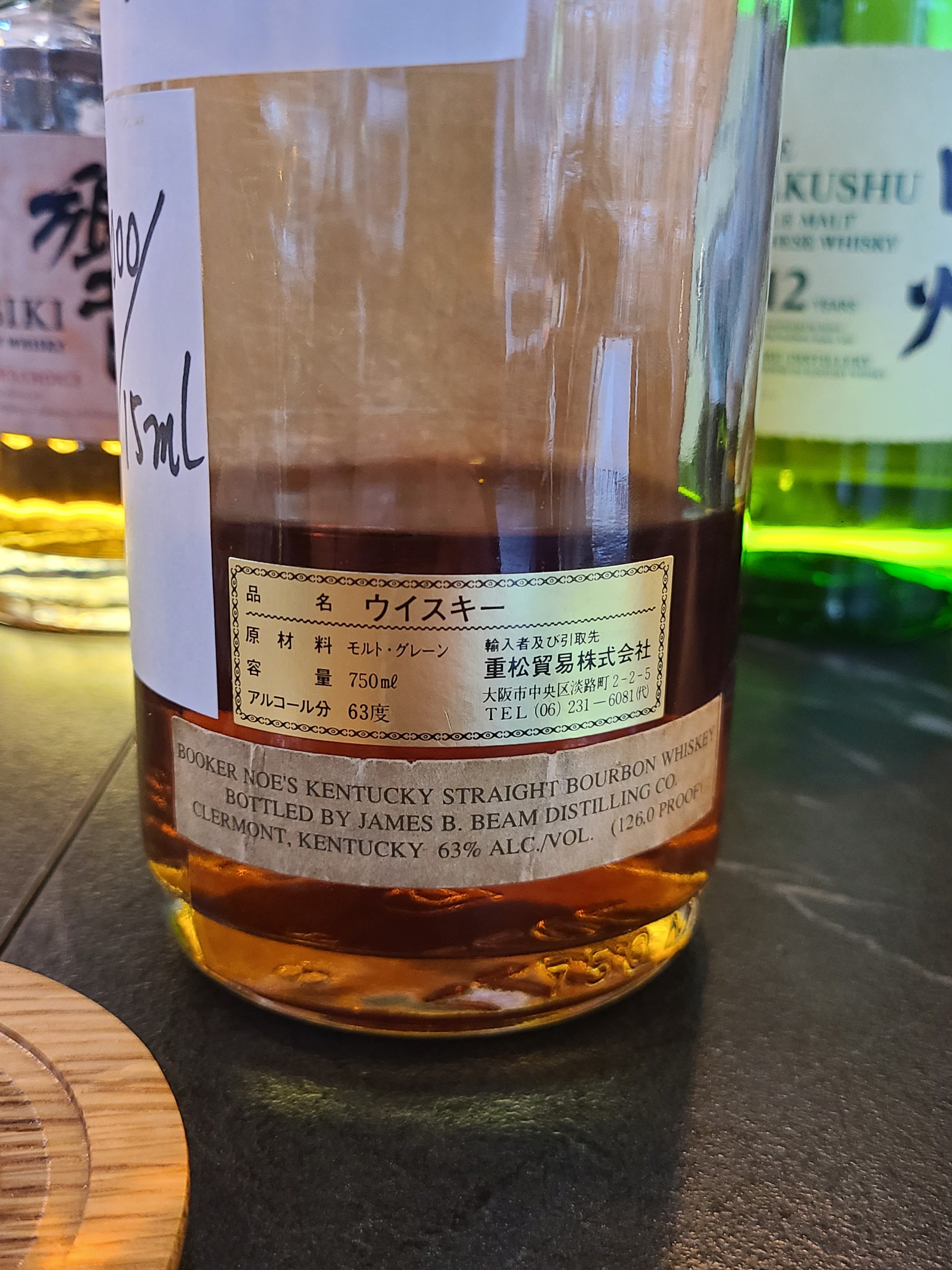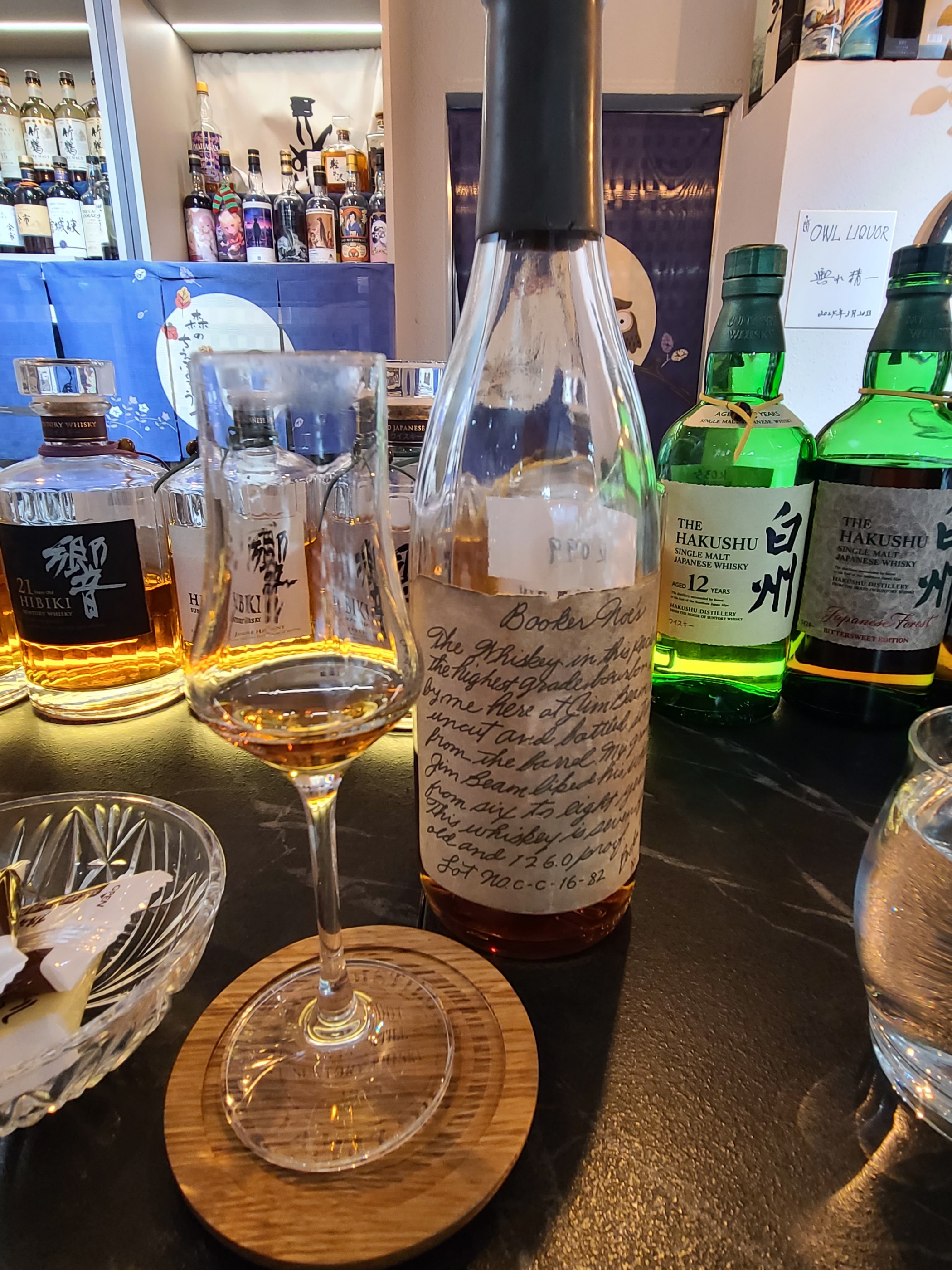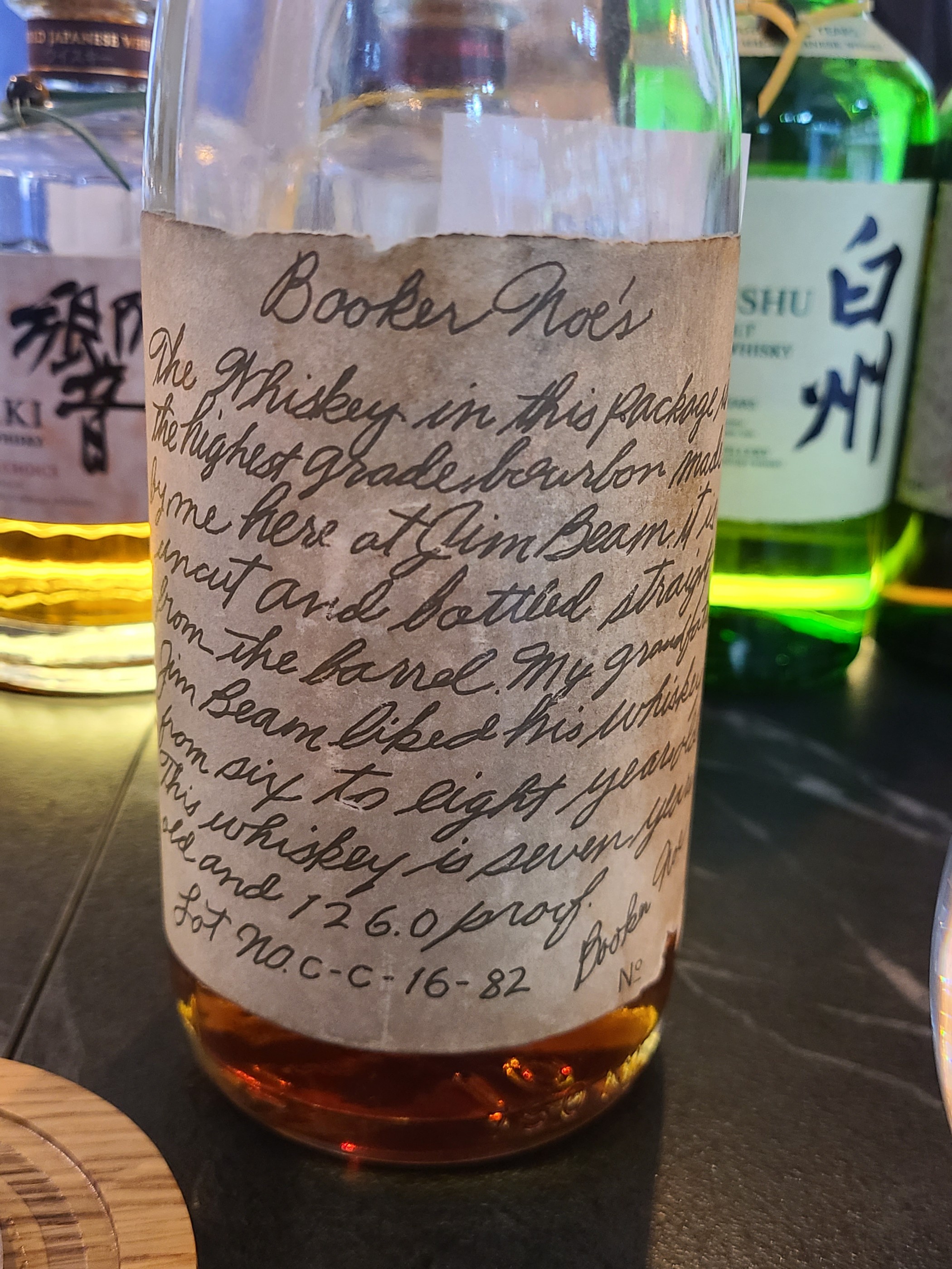 부커스 C-C-16-82 종류 : 버번 위스키 도수 : 63% N - 카라멜, 건과류, 흑설탕, 땅콩버터, 오크 에어링 잘 된 버번의 향이 감돈다. 카라멜, 건과류이 두 가지 향이 가장 큰 파이를 차지한다. 카라멜, 흑설탕의 달달한 향. 헤어즐넛과 땅콩, 아몬드 계열의 고소함의 풍미가 코를 채운다. 이게 고소함이 상당하니깐 땅콩버터 같은 뉘앙스도 있다. 의외로 체리 노트가 있긴 한데 어렵다. 과일 노트 자체가 정말 연하게 잡히고, 흑설탕의 달달함이 더 앞에 있다. 오키함도 꽤 있는데 전혀 불쾌하지 않다. 그리고 향에서 느낀게 더 있다면 바닐라가 적다. 더 찾아보면, 시나몬, 메이플 시럽, 아세톤, 가죽. 일단 건과류가 이정도로 강할 수가 있구나에 놀랐다. 오크랑 건과류의 조합이 현행 부커스와는 확연하게 다르다. 향의 풍섬함이 격이 다른데, 코를 찌르거나 하지 않는다. 깊은 향이 무엇인지 다시 한번 느낄 수 있었다. 향에서는 마셔본 버번 중에 손꼽을 정도로 좋다. P - 흑설탕, 메이플 시럽, 체리, 건과류, 아이스크림, 다크 초콜릿, 오크 일단 입에 넣을 때 부터 너무 부드럽다. 그리고 와, 달다라고 강하게 느껴진다. 흑설탕과 메이플 시럽의 달달함이다. 다음은 체리다. 향에서는 못 느꼈지만, 체리와 베리류의 산미가 느껴진다. 체리와 함께 바닐라, 버터 계열의 부드러움도 있다. (아이스크림과도 같다) 건과류도 강하게 느껴지면서 산미를 빠르게 지우고 고소함으로 이어간다. 현행 부커스와는 다른 스파이시함도 느껴지는데, 이건 표현이 좀 어렵다. 다크 초콜릿의 쌉싸름함과 오래된 위스키에서 느껴지는 특유의 오키함이 기분 좋다. 버번 특유의 강한 펀치감은 전혀 없다. 하지만 맛이 절대로 비어있지 않고 짜임이 너무 좋다. 버번은 강한 맛!이 기본이라고 생각하는데, 고급스러움에서 오는 버번은 또 다른 것 같다. F - 체리, 꿀, 오크, 건과류 건과류가 끝까지 강하게 느껴지고 정과 같은 느낌이 드는 달달함과 고소함. 진짜 맛있다. 풍미가 진짜 압도적이다. 건과류와 오키함이 이정도로 좋은 버번은 처음이다. 그리고 일단 에어링이 정말 잘되있는게 느껴졌다. 알콜이 튀거나 스파이시가 거의 느껴지지도 않고 버번의 향을 즐기기 너무 좋았다. (마스터 감사합니다) 마시면서 약간 와터 같은 느낌도 있어서 재미있었다. 물론 와터를 한참 강화해야겠지만, 노트가 비슷하다.