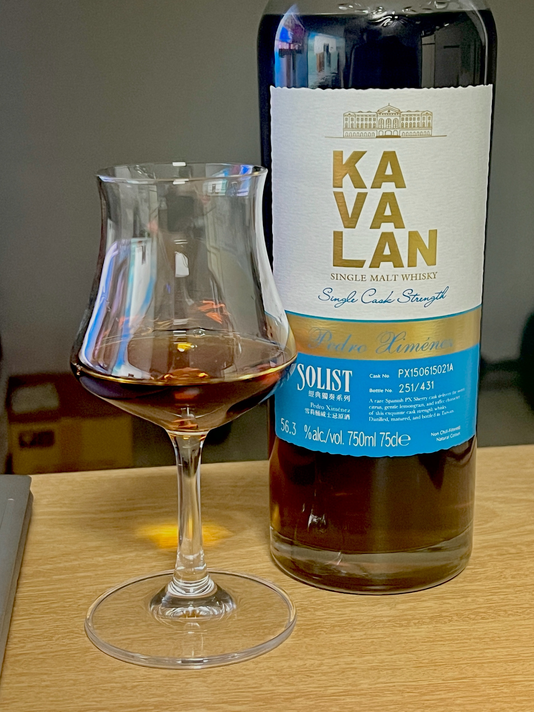 카발란 PX 56.3% 8년 1개월 숙성 뚜따한지 5일정도 되었습니다 첫 향에서 알콜부즈는 없습니다.. 느껴지지 않는다가 더 맞는 표현인거같아요. 꽃과 살짝 꿉꿉한 물에 젖은 나무 같은 향, 비온 뒤 상큼한 풀의 냄새 어찌보면 옅은 민트같기도 해요 두번째로 향을 맡으면 앞에 느꼈던 향들이 스윽 날아가고 건포도가 엄청나게 올라옵니다 건포도와 베리, 다크초콜릿같은 향이 엄청 올라오다 도수빨의 살짝 매콤함이 느껴지네요. 초콜릿은 흔히먹는 초콜릿이 아니라 카카오 100%의 커버춰 초콜릿을 맡을때의 향기입니다 맛에서는 바닐라인가? 싶은 꽃향이 살짝 들어오면서 포도가 초콜릿 파도를 타고 입안을 가득채웁니다 향에서 살짝 매웠는데 맛에서는 거의 안느껴지네요. 그리고 객관적으로 엄청 달달합니다. 과일의 단맛뿐 아니라 굉장히 여러가지 단맛이 나네요. 개인적으로 엄청 만족스럽습니다. 피니쉬에서는 아까 사라졌던 매콤하고 알싸한 맛이 슬쩍 혀를 지나가면서 입안에 머금었던 초콜릿과 건포도가 내려갑니다. 내려가다 다시 아래에서 부터 매우고 아린맛이 혀끝까지 쭉 타고 넘어오다가 살짝 씁쓸한 다크초콜릿의 맛이 덮어주면서 마무리 해주네요.. 정말 훌륭합니다. 구할수있다면 3-4병정도 쟁여두고싶어요 PX캐스크를 처음먹었는데 정말 좋은 경험이였어요