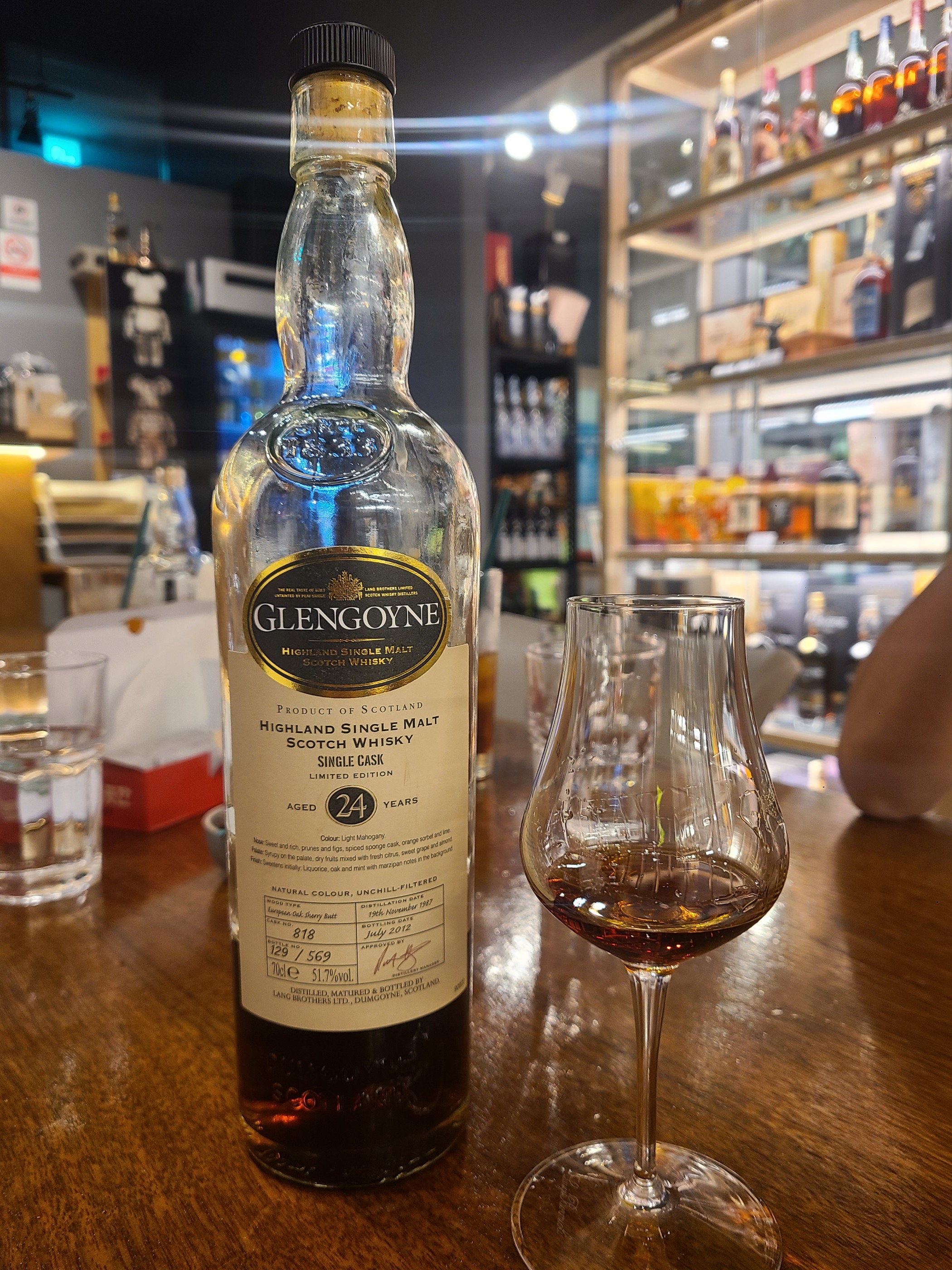 글렌고인 싱캐 24y 대만한정 51.7도 바닐라 뒤로 싱싱한 포도송이를 들고 속을 깊게 맡을 때의 향. 그 속에 무성한 열대과일, 오렌지의 과즙, 어쩌면 조금 까끌다고 생각할 수 있는 진한 계피, 포도에 젖은 울타리 고인은 도돌이표 느낌.. 잘 알 것 같고 질릴 것 같아도 그윽한 향을 생각하게 되면 다시 욕심나서 찾게되는 그런 매력이 있는 것 같다. 어떤 좋은 술들이 다시 안찾게 되겠나 싶지만 고인 풀셰리 라인은 여러 다른 술보다 안정적이고 편안함이 있다고 생각한다.