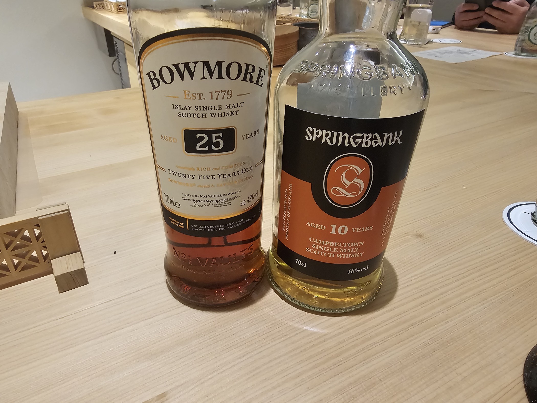 스프링뱅크 10년, 넘 단순하면서도 스뱅의 향과 짠맛을 확실히 느낄 수 있는 위스키였습니다. 바로 오픈하고 마지만 전혀 스프릿을 느낄 수 없는 볼륨을 느끼게 하는 오랜지향 시트러스 짠맛 등 전통적인 스뱅을 느꼈습니다. 그리고 마신 보모어 25년은 꾸덕하며 찐뜩한 초코렛향을 느끼게했습니다. 보모어 25년을 한모금하고 다시 스뱅 10년을 마셔 보는데 갑자기 좀 전에 못느낀 스피릿이 확 처 버립니다. 화사하고 심플하게 마실 수 있는 스뱅과 고숙성의 보모어를 맛 볼 수 있는 순간이었습니다. 특히 스시오마카세와의 피트는 훌륭한 조합이었습니다