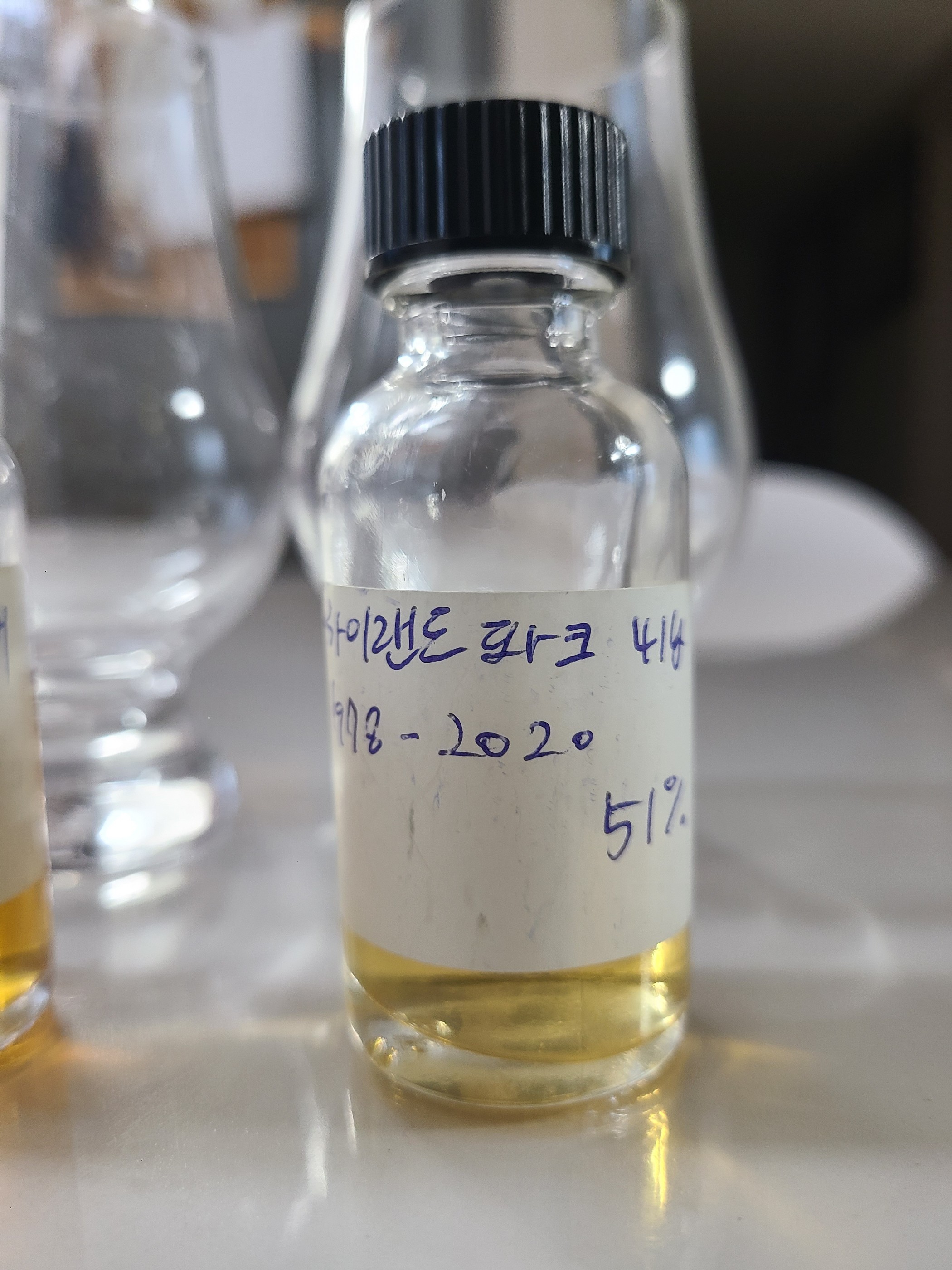 종류 : 싱글몰트 위스키 도수 : 51% N - 풀, 나무, 레몬, 바닐라, 밀크 초콜릿, 스모키 마른 풀과 나무 껍질과 같은 느낌의 향이 먼저 느껴진다. 그렇다고 라이처럼 화한 느낌은 적다. 화한 느낌 보다는 과일의 시트러스 같은 느낌이다. 바닐라, 밀크 초콜릿의 느낌도 연하게 잡힌다. 청사과 같은 시원한 과일 향도 있다. 약간의 스모키함도 끝에 있다. P - 백설탕, 시트러스 과일, 허브, 나무 맛은 생각보다 달다. 설탕 시럽 같은 단 맛이다. 시트러스도 꽤 있으면서 짠 맛도 부드럽게 이어진다. 자몽과 오렌지 껍집의 쌉싸름함도 있다. 맛에서 느껴지는 과일들이 자몽, 오렌지, 레몬 같은 시트러스 계열이다. 화한 느낌은 끝에 있으면서 나무가 잡힌다. 전체적으로 부드럽고 튀는 맛 없이 조화롭다. 이거 바이알로 더 담아 올 것 그랬다. 맛들이 전체적으로 촘촘해서 더 찾을 수 있을 것 같은데,, 어렵다. 아쉽다. F - 나무, 스모키, 레몬 몇 잔 마시고 아무 생각 없이 마셨더니, 아쉬운 리뷰다. 대만에서 기회가 된다면 시음해보는 것도 추천한다.