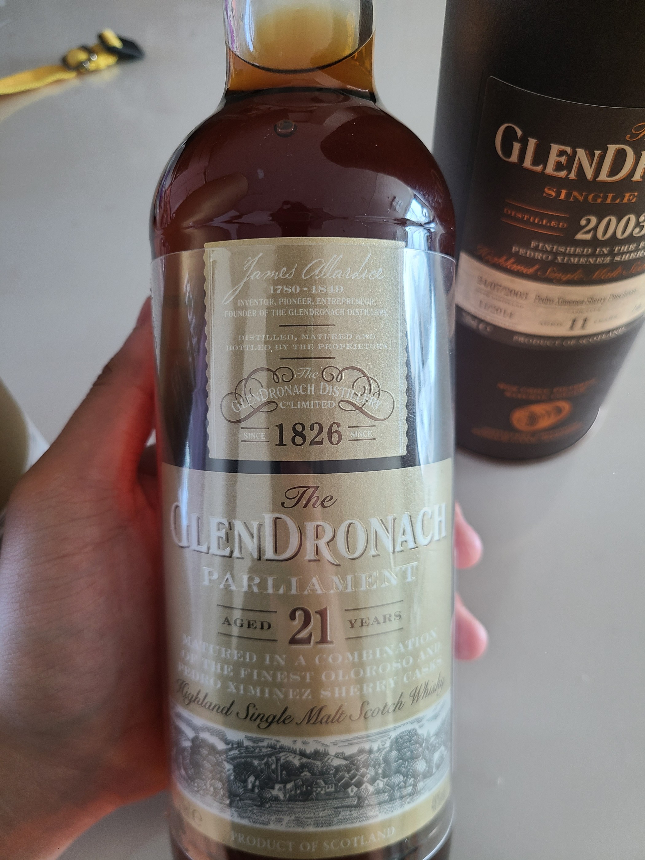LJ11012 종류 : 싱글몰트 위스키 용량 : 700ml 도수 : 48% N - 셰리, 건포도, 건대추, 향신료, 과일, 보리, 오크 찐한 건과일, 건대추의 향. 달달하고 끈적한 향과 향신료의 매움이 같이 올라온다. 푸룬, 건포도, 베리, 레몬, 오렌지, 사과 등 복합적인 과일 향이다. 그리고 후추와 계피의 매움이다. 과일 밑에는 꿀과 바닐라가 옅게 있다. 고소한 곡물의 향과 건과류의 향도 있다. 끝에는 크지 않은 오크 향. 향 자체가 강하다는 느낌이 있다. P - 계피, 오크, 셰리, 베리, 건과류, 다크 초콜릿 첫 입은 맵고 오크의 쌉싸름이 있다. 계피같은 매움이 꽤 있으면서 탄닌감이 따라온다. 스월링 후 마셔보면 베리류와 셰리가 느껴진다. 셰리의 느낌이 점차 선명해지면서 건과일이 보인다. 그리고 신 맛(오렌지)이 꽤 있어, 쓴 맛을 잡아준다. 과일의 산미와 건과류의 고소함이 조화롭다. 마시다보니, 과일 노트가 점차 보이면서 다크 초콜릿의 느낌도 선명해진다. 전체적으로 복잡하고 강한 셰리 위스키다. F - 탄닌, 셰리, 오렌지 길게 탄닌이 잡히고 오렌지 껍집의 쌉싸름이 마무리 된다. 믿고 마시는 맛.