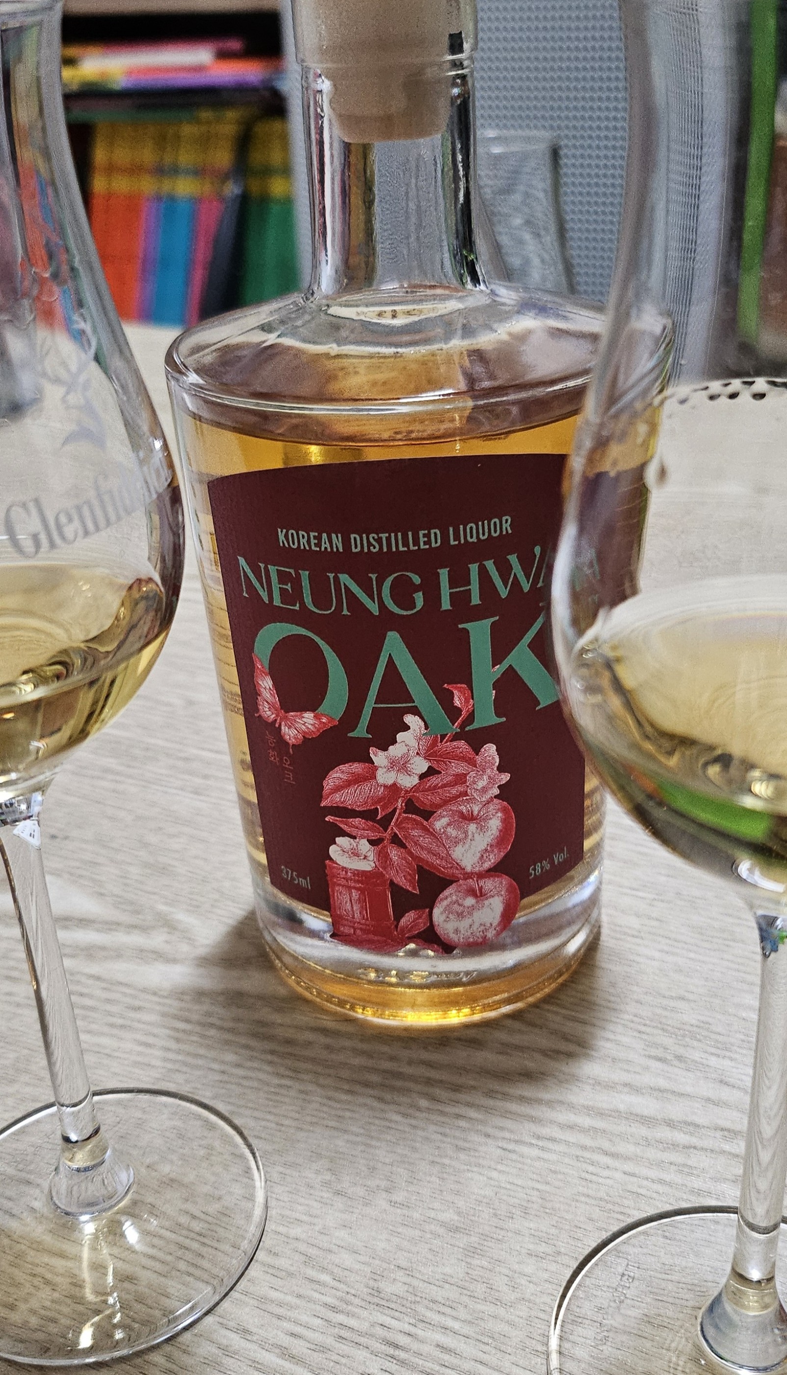 제가 사랑하는 가무치의 형제인 능화오크 cs입니다. 코리아 쌀바도스라고 불리는데요. 전통소주와 사과브랜디의 만남이라서 너무 재미있습니다. 향에서 사과향과 우디함 약간의 계피향과 빵냄새 그리고 버번캐스크 위스키에서나는 익숙한 바닐라향 굉장히 향긋한 플로럴한 향도 느껴집니다. 알콜안칩니다. 맛은 시나몬애플파이라 한마디로 표현가능합니다. 첫 뚜따맛은 당도없는 맛없는 부사맛인데 피펫으로 물을 넣으니 당도가 폭발해서 달디단 꿀부사가 됩니다. 피니쉬로 계피맛이 쭈욱 올라오고 cs답게 긴 피니쉬가 이어집니다. 사과 피니쉬가 계속길게 이어집니다. 가격은 375미리가 93000원이니 다농답지만 아깝지는 않습니다. 👍
