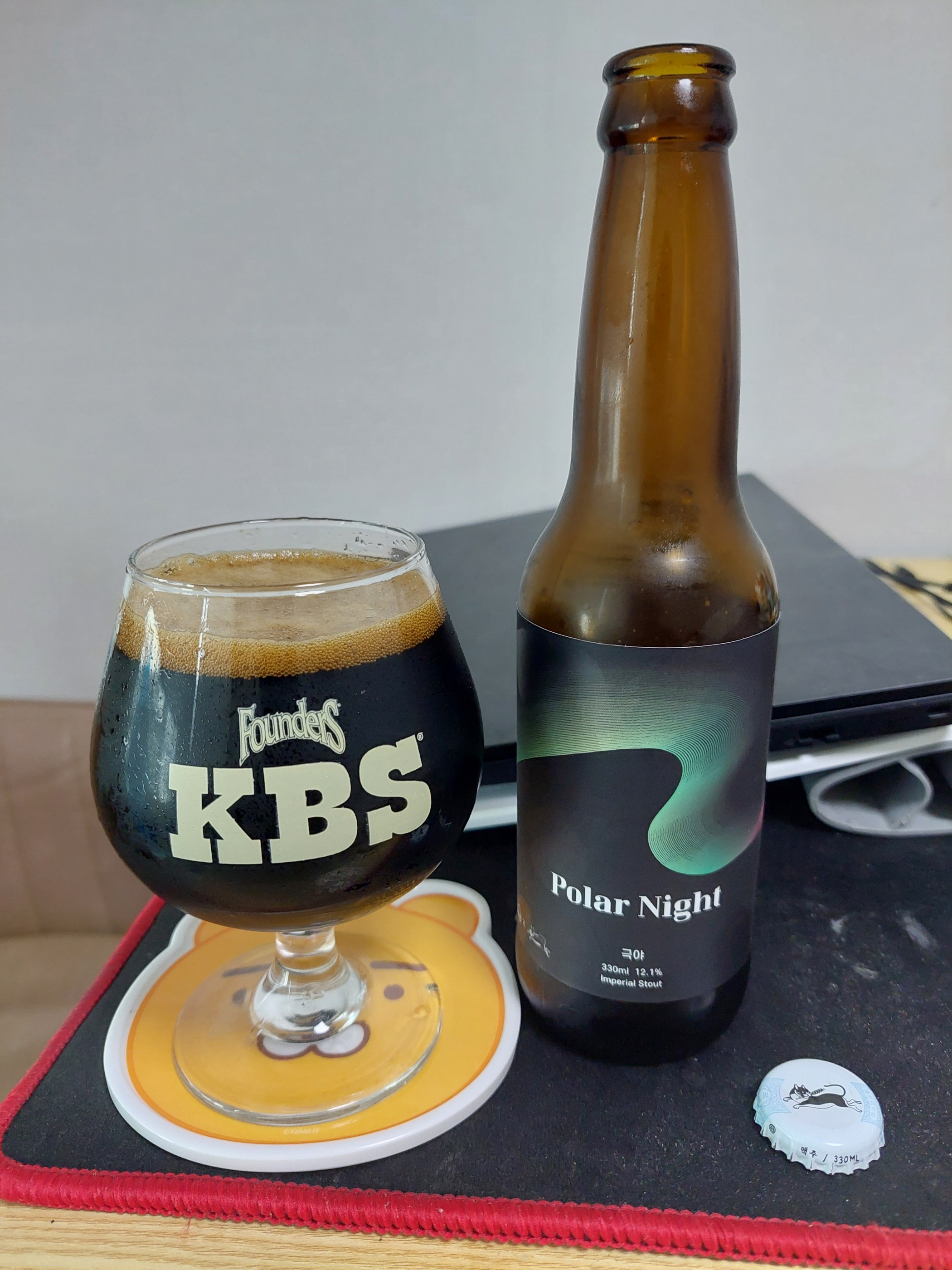 색이 아주 진한 거품. 향에서 바닐라와 아몬드. 입에 처음 물었을 때 인공적인 바닐라 향에서 바로 자연스러운,그러나 독특한 산미로 넘어간다. 맛에서 가장 튀는 점은 흔하지 않은 산미. 커피쪽와는 다른 결. 살구 때문이라고 추측.