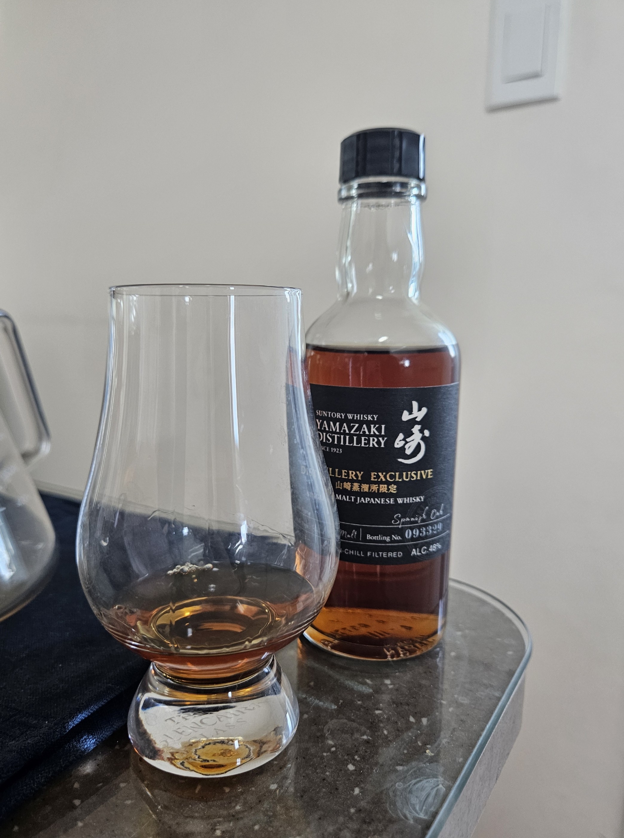 야마자키 증류소에서 180ml 병으로 1인 2병씩 판매하는 야마자키 디스틸러리 익스클루시브 제품입니다! 스패니쉬 오크 숙성, 피티드 몰트 제품입니다. 야마자키 증류소에서 시음한 제품 중에 가장 입맛에 맞아서 구매했습니다. 명백하게 느껴지는 피트향과 포도즙같은 셰리 향이 잘 어울립니다. 피트를 싫어하신다면 비추천하지만 좋아하신다면 한번쯤 먹어볼만 합니다. 혀에 닿을때의 달달한 첫 맛. 이후 퍼지는 피트의 감칠맛이 잘 어울려서 정말 매력적입니다. 피트와 자두쪽보다는 레몬쪽의 포도즙같은 향들이 합쳐지는 시너지도 좋습니다.