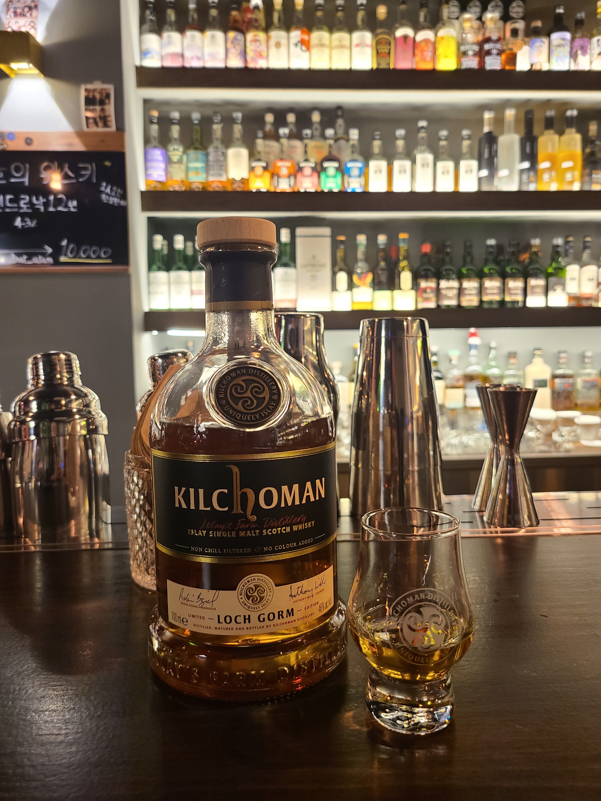종류 : 싱글몰트 위스키 도수 : 46% N - 스모키, 요오드, 오렌지, 베리 스모키함! 요오드! 피트의 향연. 스모키함이 7이면 요오드 3정도. 피트 밑에 오렌지이 깔려있다. 시간이 지나면 베리류가 살아난다. P - 스모키, 시럽, 건포도, 몰티, 초콜릿, 건과류 직관적인 스모키함. 시럽? 같은 단 맛이 올라온다. 그리고 건포도의 뉘앙스가 있다. 매운감이 살짝 있으면서 톡 친다. 고소한 몰티감과 초콜릿의 쌉싸름도 공존한다. F - 스모키, 나무, 짠 맛 단 맛 피해서 마셨는데, 의외로 달았다.