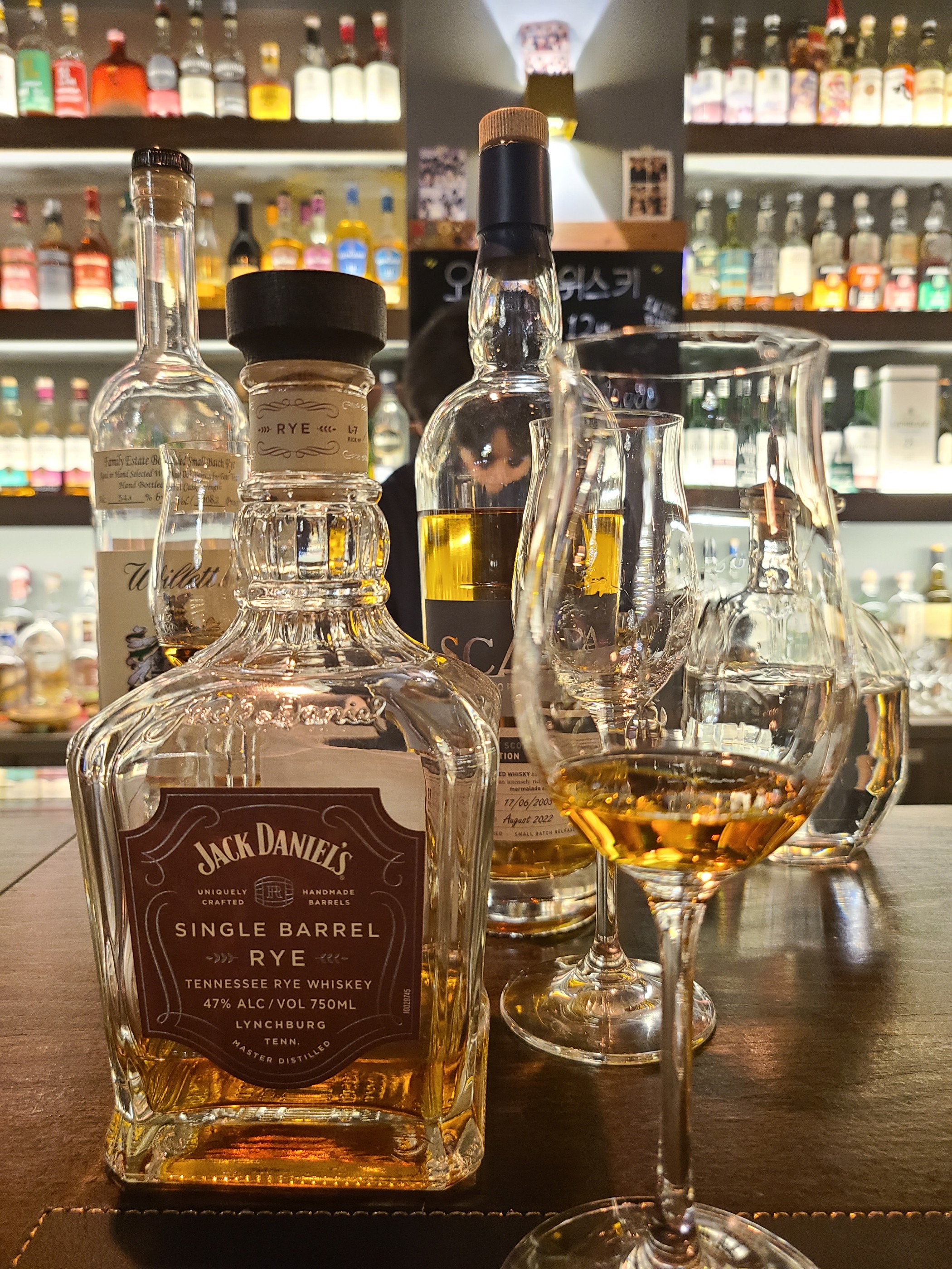 종류 : 테네시 위스키 도수 : 47% 배럴 프루프는 아니지만 평타는 치는 잭다니엘 라이 N - 카라멜, 바닐라, 바나나, 몰트, 허브, 라이 찐한 카라멜과 바닐라을 가진 버번. 어두운 버번은 아니고 밝은 느낌의 버번이다. 잭다니엘 특유의 바나나, 연한 밀크 초콜릿 향. 몰티한 고소한 느낌도 올라오고, 허브의 시원함이 올라온다. 처음에는 라이의 느낌을 막 찾기는 어렵지만, 시간이 지나면 라이 느낌이 살아난다. 뒤로 갈수록 과일이 조금 더 잡힌다. P - 꿀, 카라멜, 바닐라, 아이스크림, 오크, 스파이시. 라이 꿀, 카라멜의 달달한 맛. 그리고 약간 아이스크림이 생각나는 부드러움과 크림같은 맛. 오크도 꽤 따라오면서 너무 달지만은 않다는 걸 보여준다. 매운감이 살짝 있지만 거슬리는 정도는 아니다. 라이 느낌은 끝에서 느껴진다. 도수에 비해서 상당히 부드럽다. F - 정향, 카라멜, 오크, 허브 피니쉬가 짧지만 잭라이가 어떤 건지 잘 보여준다.