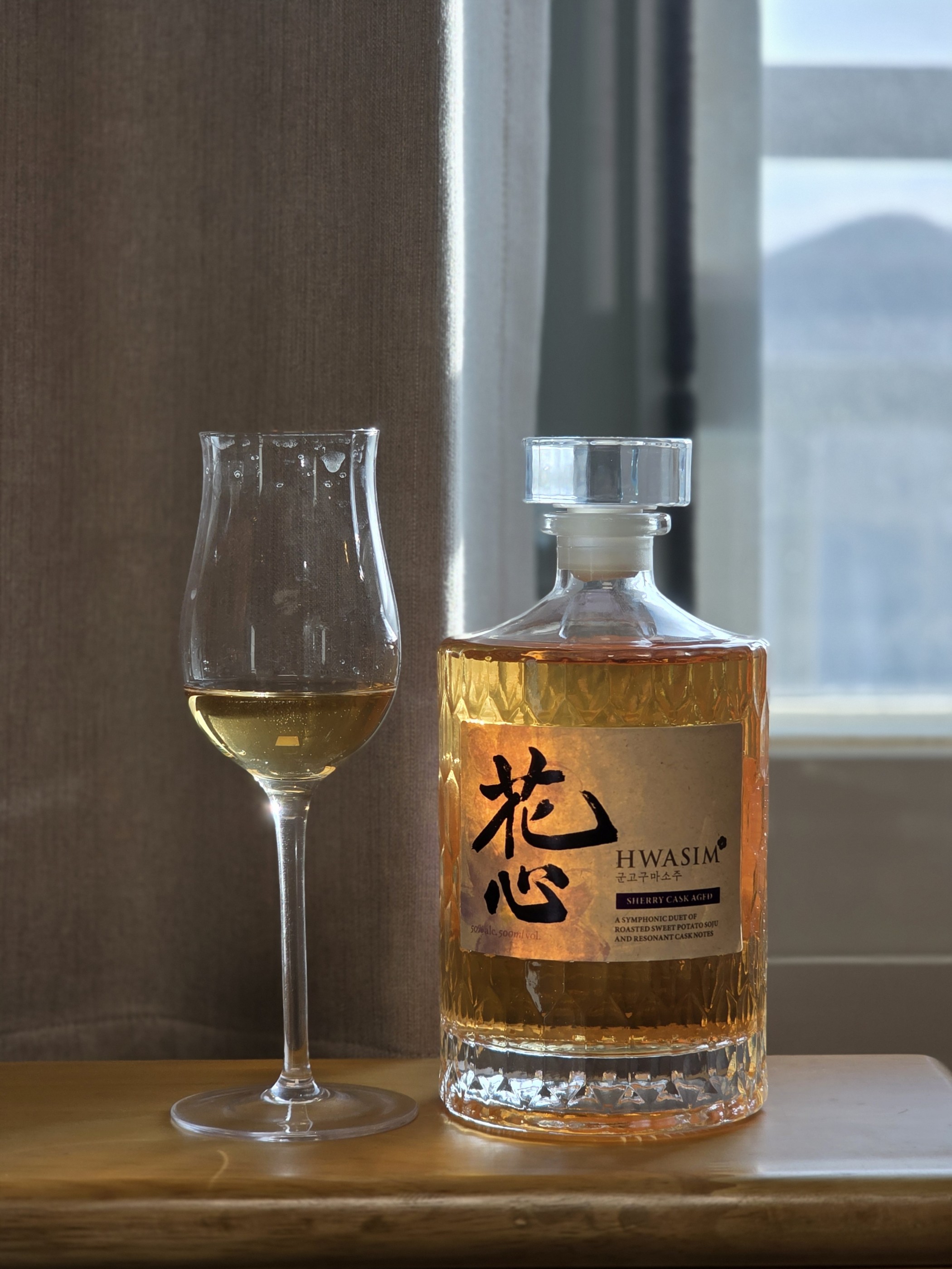 Aroma 꿀, 누룩, 꽃, 허브, Taste 꽃, 약간의 시트러스, 고구마 Finish 군고구마, 생고구마, 라벤더 처음 뚜따 하자마자 향에서는 누룩취가 꽤 많이 나서 겁을 먹었다. 스월링을 계속 해주면서 에어링시간을 조금 가지고 나니, 누룩취가 많이 줄어들고, 꿀의 단향과 약간의 누룩향이 꽃, 허브의 뉘앙스랑 어우러져 들어와서 생각보다 괜찮아졌다. 맛에선 향에서보다 좀 더 은은한 꽃향과 거북하지 않은 누룩향이 느껴지고 살짝 침이 고이게 하는 정도의 시트러스함도 느껴진다. 그리고 목넘기기 직전 약간의 고구마의 맛이 느껴지는데 직관적인 느낌은 아니었다. 목에서 넘어가고 바로 군고구마의 맛이 직관적으로 느껴진다. 어느정도 향이 옅어지면서 생고구마를 씹었을 때의 쌉싸름하면서 달달한 그 맛이 느껴져서 너무 신기하고 중독성이 있다. 생고구마의 향이 옅어지면 은은한 라벤더향의 뉘앙스로 바뀌어 느껴지다가 사라진다. 소주를 좋아하지 않는 편이라 걱정했는데 누룩취가 적은편이고 개인적으론 위스키와 다른 또 다른 매력으로 정말 취향에 잘 맞는 맛이라 맛있게 마셨다 ps. 시간지나고 에어링좀 돠고나니 직관적인 군고구마의 향과 팔레트가 느껴지고 이게 중독성이 있어서 자꾸 생각나는 맛..