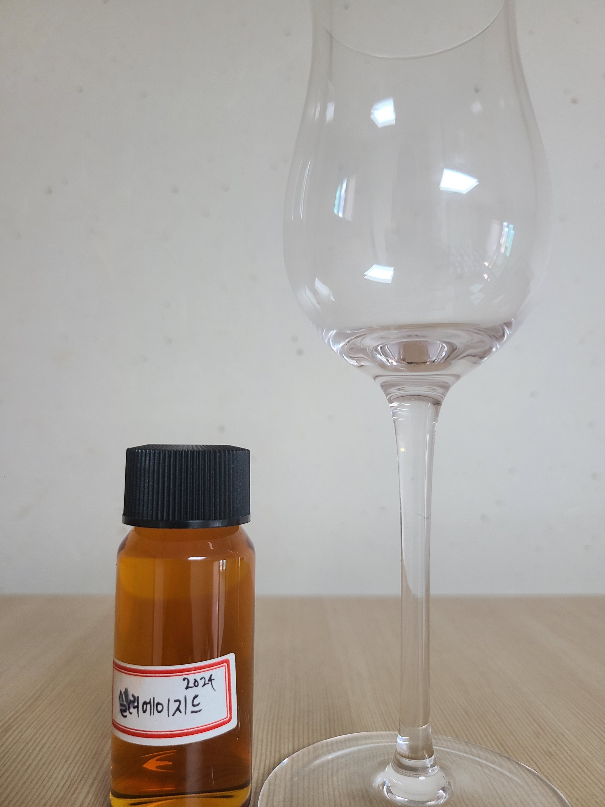 종류 : 버번 위스키 도수 : 59.65% N - 시트러스, 우디, 땅콩, 카라멜, 바닐라, 아세톤, 허브 체리랑 오렌지를 잘 섞어서 만든 콤포트스러운 향. 우디 자체는 꽤 가볍다. 땅콩의 뉘앙스와 카라멜, 흑설탕의 달달함. 바닐라도 연하게 올라온다. 계속 맡다보니 아세톤이 확 올라온다. 생 풀 혹은 허브계열의 향도 나면서 향을 풍성하게 만든다. 향이 조금 풀리니 바나나, 가죽, 꿀 같은 뉘앙스도 있다. P - 허브, 꿀, 체리, 우디, 팝콘, 스파이시 메이커스 마크에서 느껴지는 풀과 꿀의 노트.. 향보다 진하게 느껴지는 체리. 체리, 베리가 꽤 강하게 느껴진다. 고소하고 달달한게 팝콘이 생각난다. 우디함 자체가 꽤 있어서 단 맛을 잘 잡아준다. 다크 초콜릿의 쌉싸름함도 느껴지면서 포도도 생각난다. 첫 맛은 달달하고 기름진 버번인데 중간을 넘어갈 수록 드라이해진다. 매운감 자체도 드라이한 느낌과 함께 움직인다. F - 땅콩, 오크, 스파이시 싫어할 수는 없지만 기대만큼은 아니다 라고 늘 느끼는 버번.