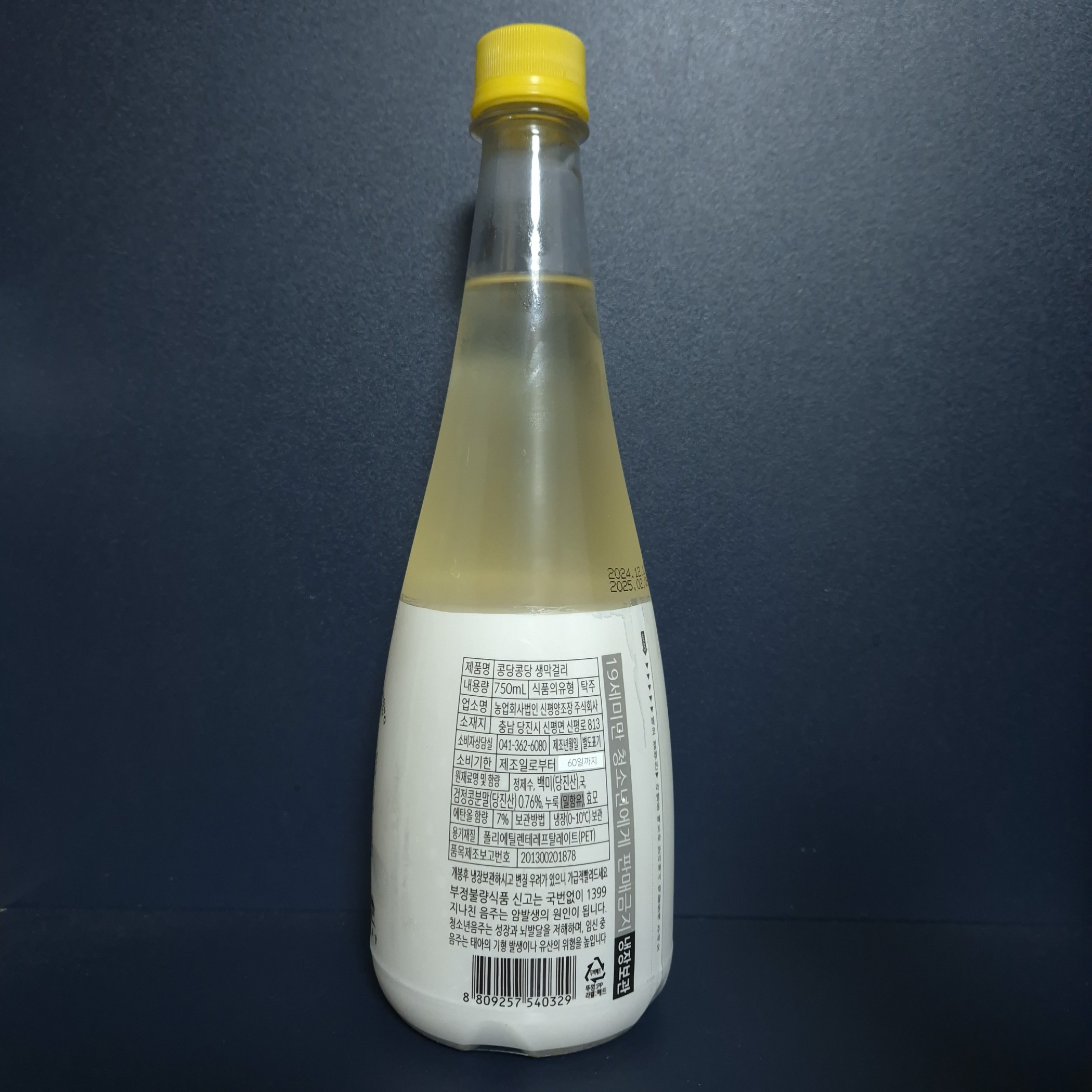탄산은 없는 살짝 검은빛이 도는 듯한 흰색의 막걸리입니다. 거기에 검은 가루가 살짝살짝 보입니다. 검은콩 가루인 것 같습니다. 제법 많이 가라앉아있는 게 마실 때마다 흔들게 되네요. 향에서는 산뜻하고 쌀에서 올라오는 달달한 막걸리의 향, 그리고 약하게 꽃의 향긋함을 느낄 수 있는 향이 올라옵니다. 한잔 입에 넣으니 쌀 막걸리의 단맛과 잘 익은 과일 같은 향 그리고 산미가 어우러집니다. 막걸리는 묵직하지 않고 깔끔한 느낌입니다. 시원하고 가벼운 막걸리가 입에서 단맛과 산미가 어우러지면서 목으로 넘어가고 목 넘김 이후에는 볶은 콩의 고소함과 쌀의 단맛이 입에 남습니다. 적당한 단맛과 산미가 가벼운 질감의 막걸리에 어우러지면서 목 넘김 후에 볶은 콩의 고소함이 은은하게 입안에 남는 맛있는 막걸리입니다. 막걸리의 끝에서 오는 콩의 고소함을 느끼고 싶다면 맛이 연한 안주를 추천드립니다.